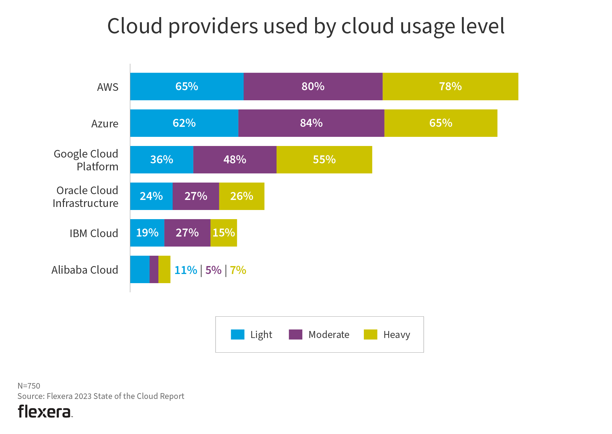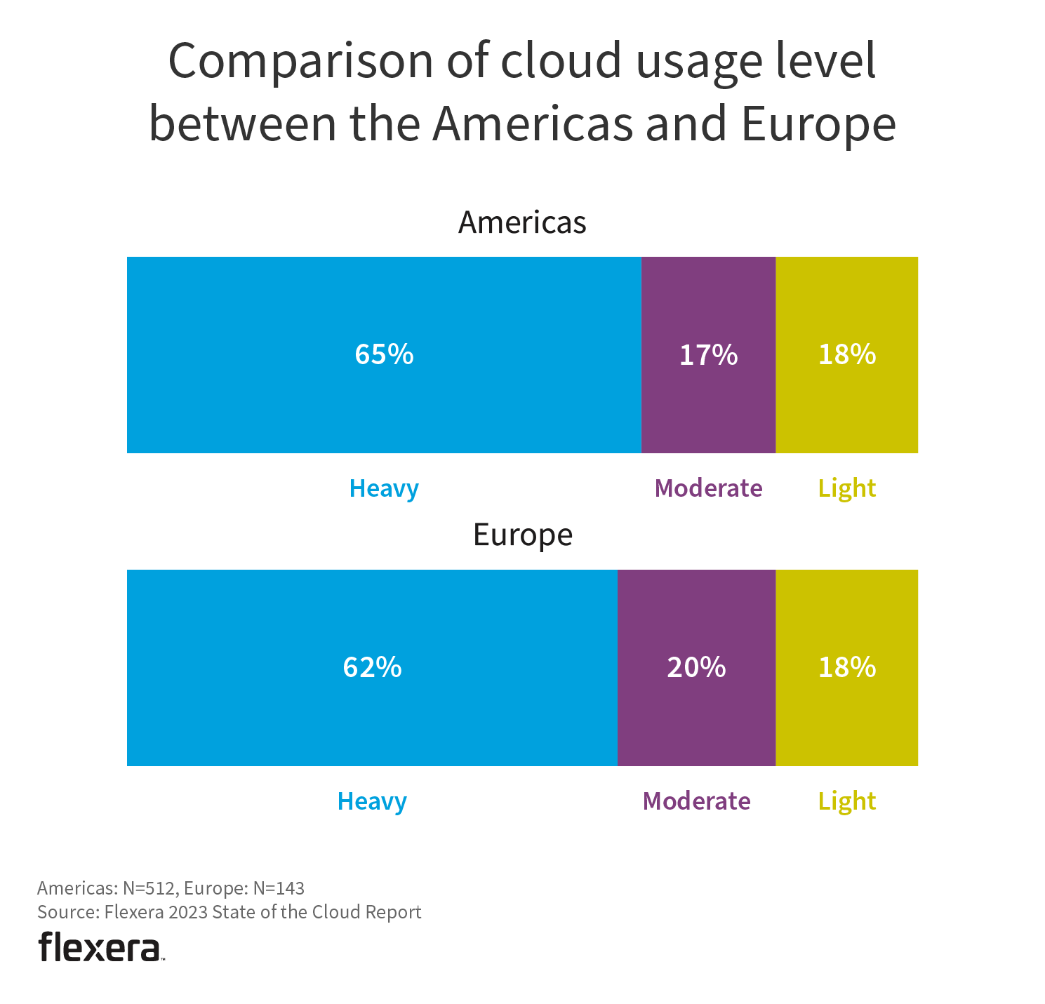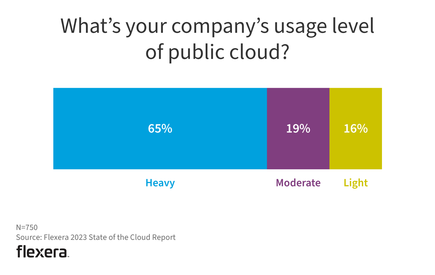 Cloud adoption continues to become more mainstream. Heavy users now represent 65% of respondents, up from 63% last year.