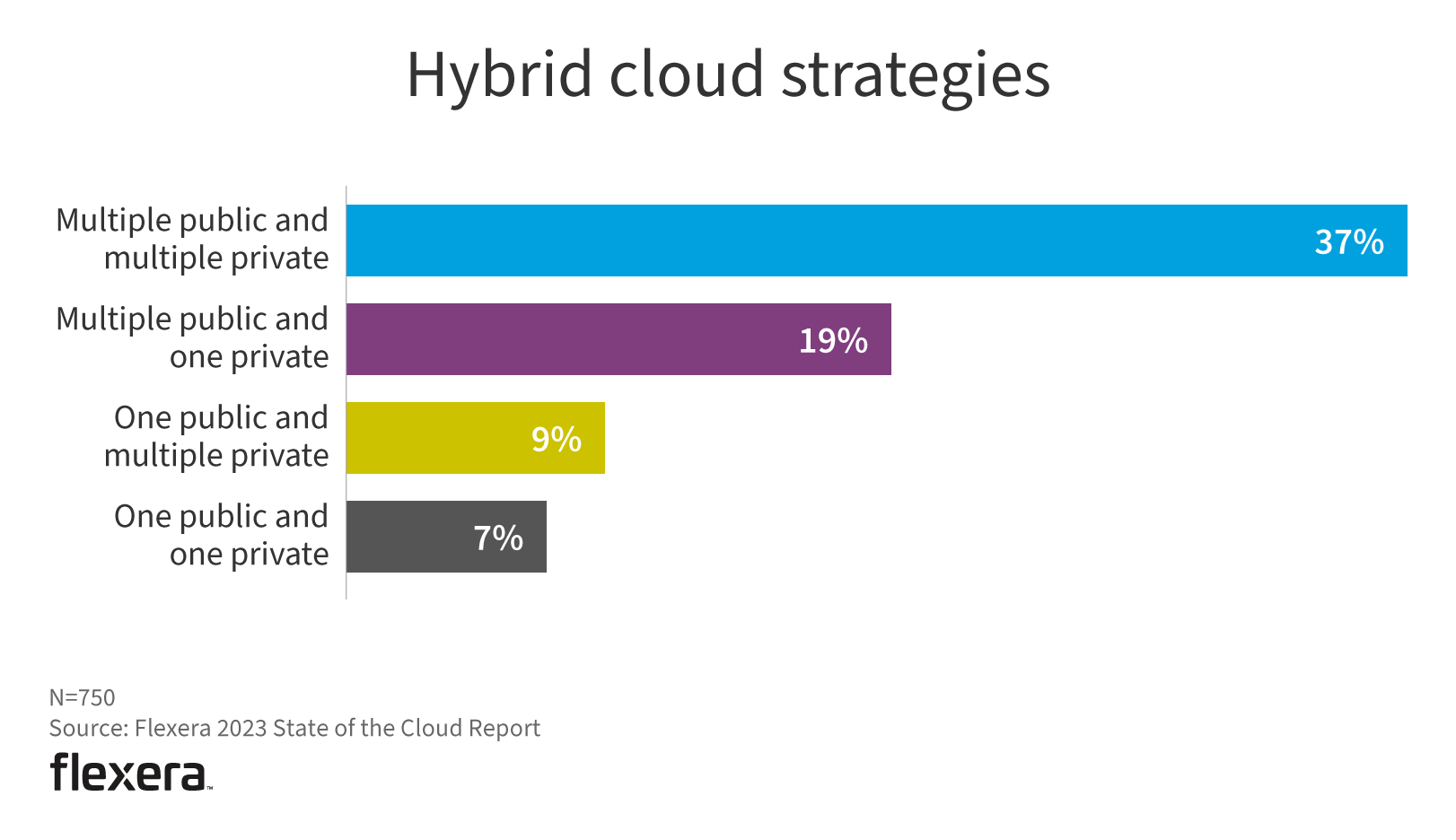 The increased usage of public cloud only is evidenced here as well, with an increase to 24% (up from 16% in 2022).