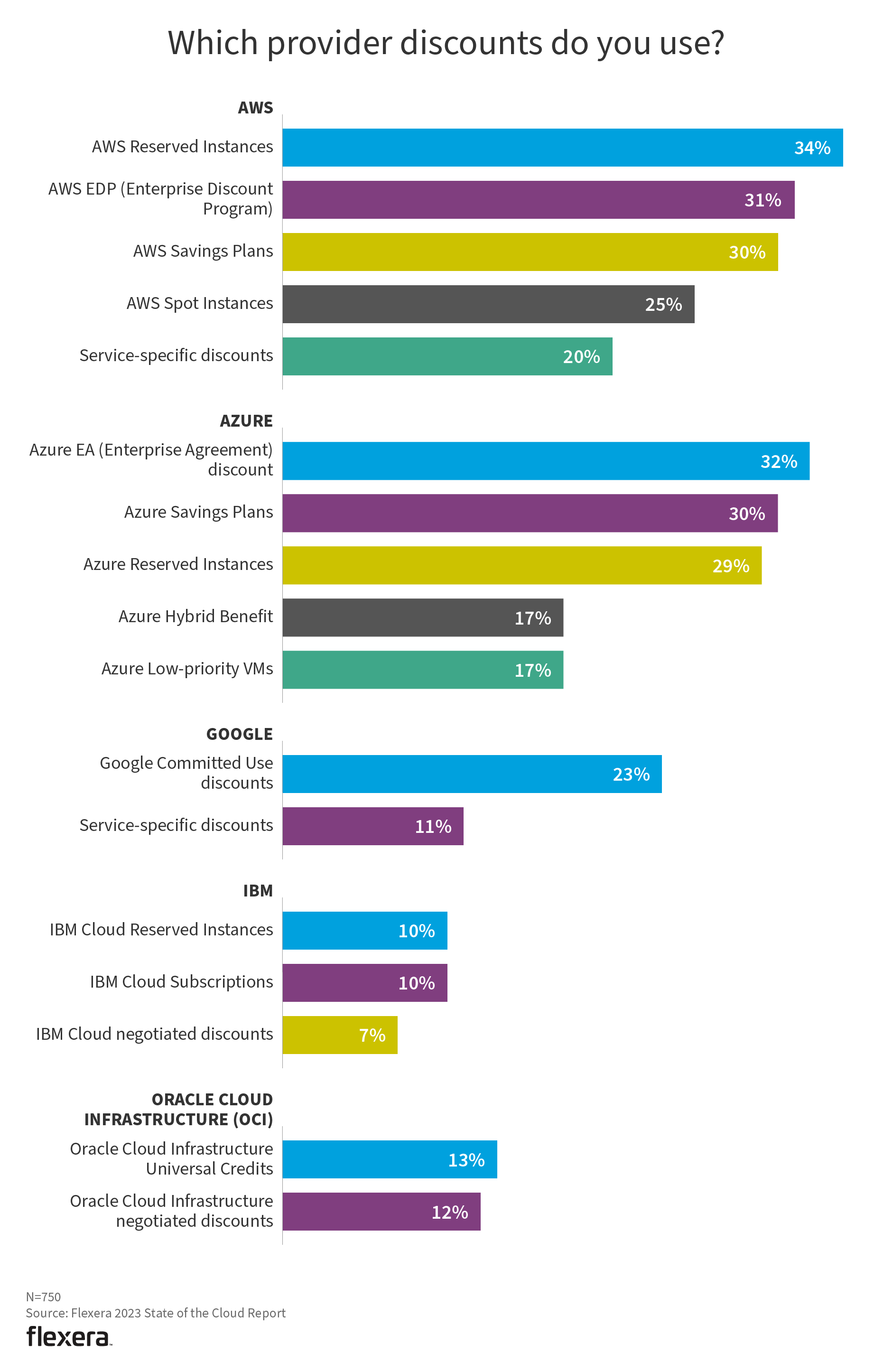 Cloud provider pricing structures are complex and difficult to decipher, but provider discounts can identify opportunities to reduce costs. About one-third of respondents took advantage of these savings opportunities. In many cases, organizations can easily take better advantage of these discounts.