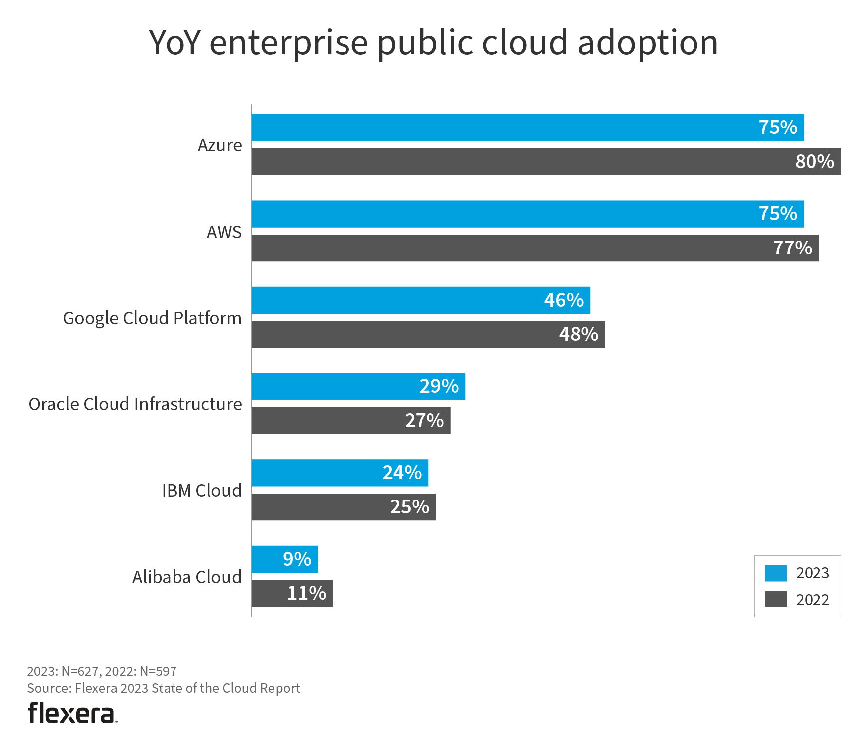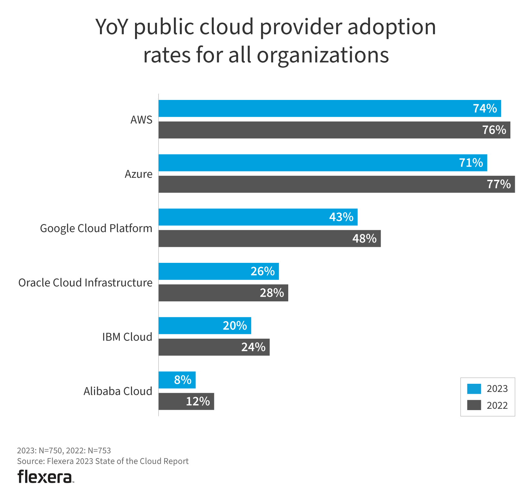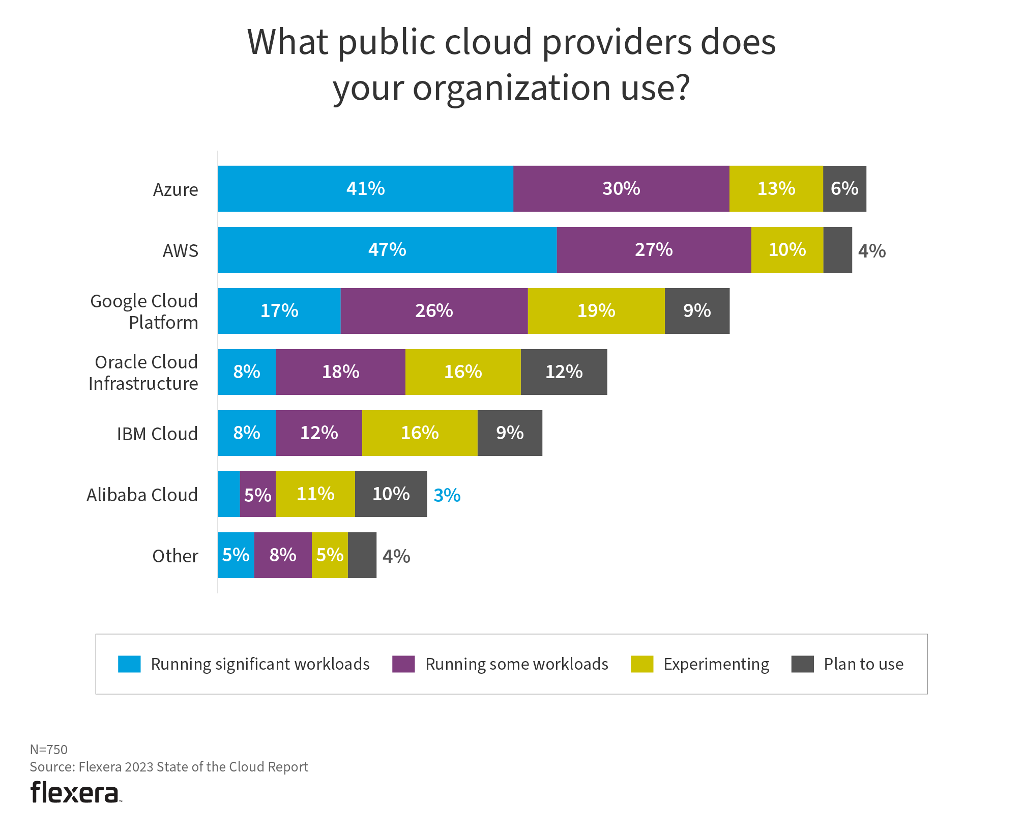 AWS and Azure remain the most widely adopted cloud providers, ahead of Google Cloud Platform, Oracle Cloud Infrastructure, IBM Cloud and Alibaba Cloud.