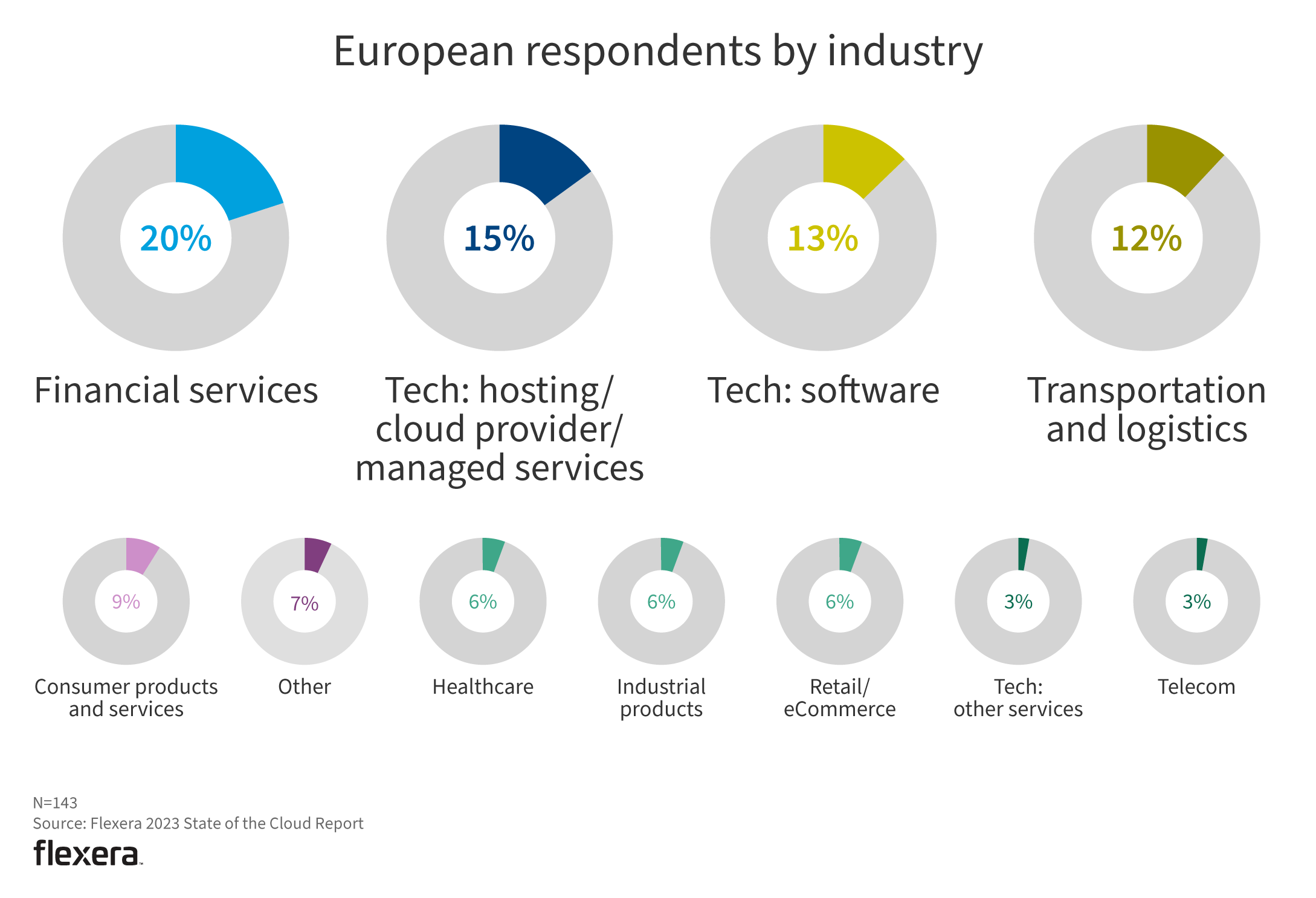 Tech-related industries (32%) and financial services (20%) lead the pack, followed by healthcare.