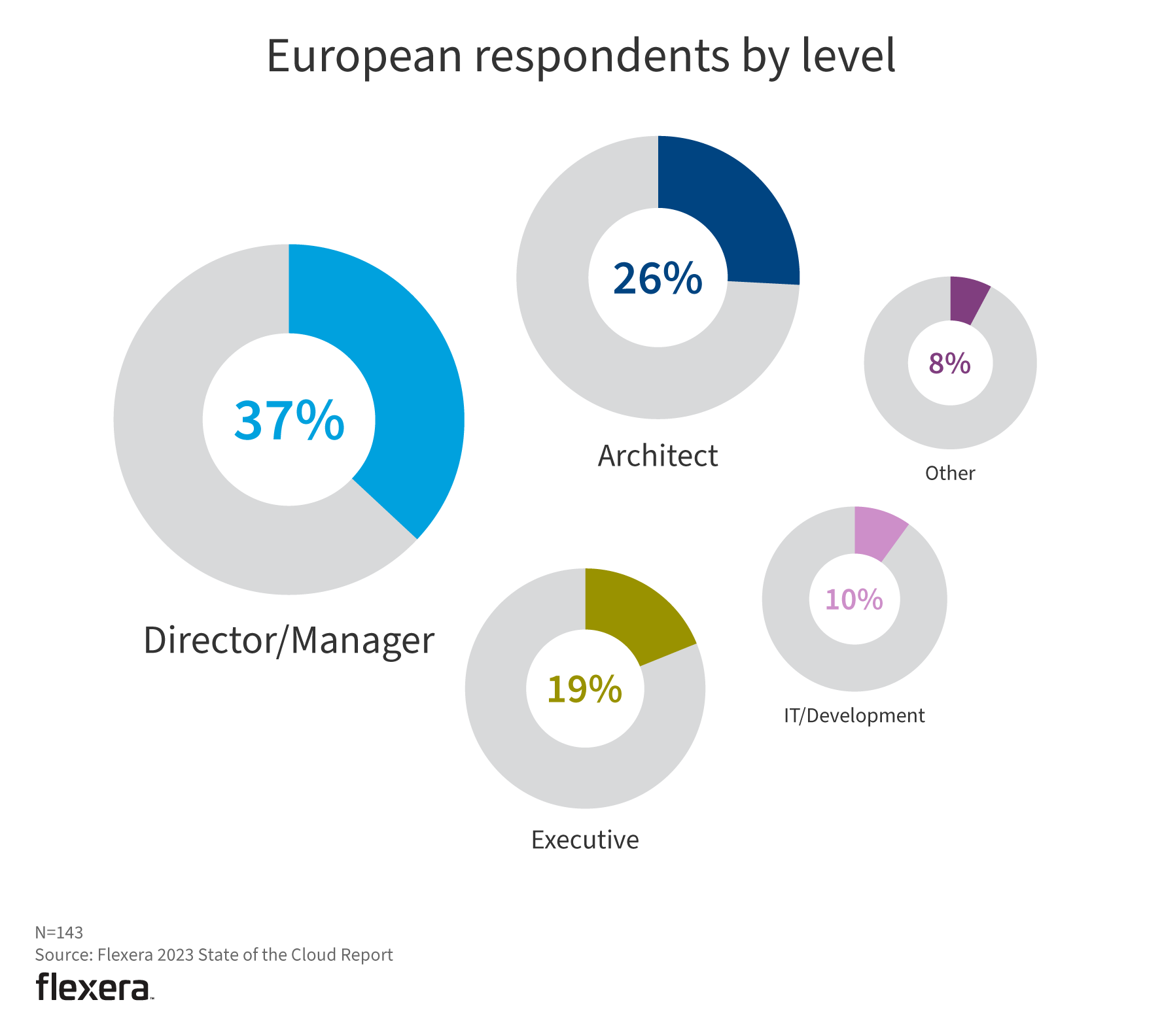 European respondents have slightly fewer architects than the global pool (26% to 29%, respectively) and more director/managers (37% to 31%, respectively).