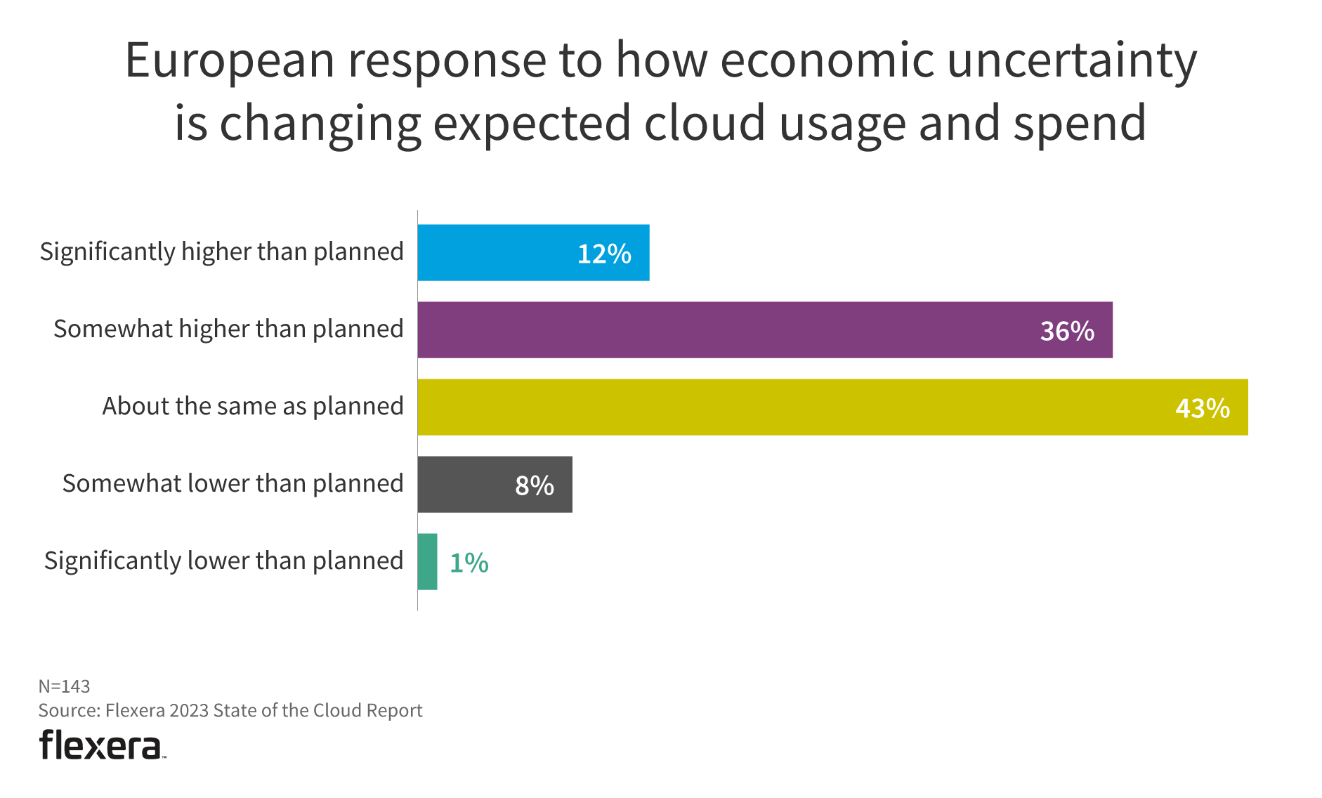 Similar to global sentiments, economic uncertainty doesn’t seem to have a significant impact on cloud usage and spend for European respondents