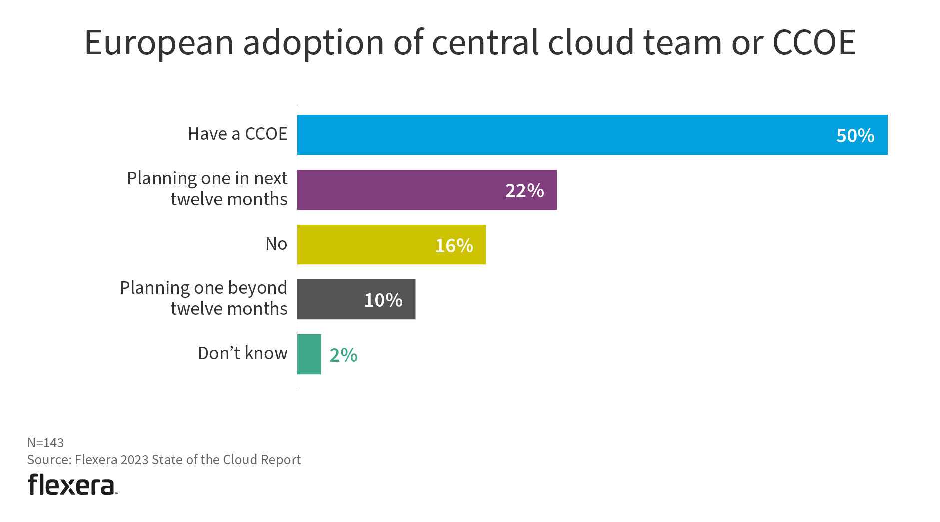 The majority of European organizations have a CCOE (50%) or plan to within the next year (22%).