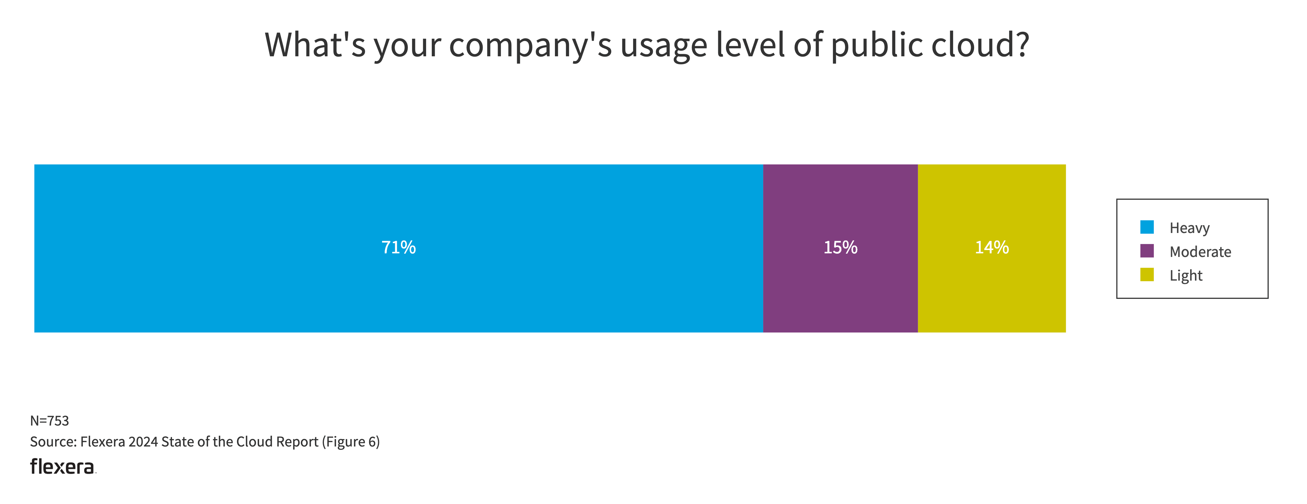 Cloud adoption continues to become more mainstream. Heavy users now represent 71% of respondents, up from 65% last year.
