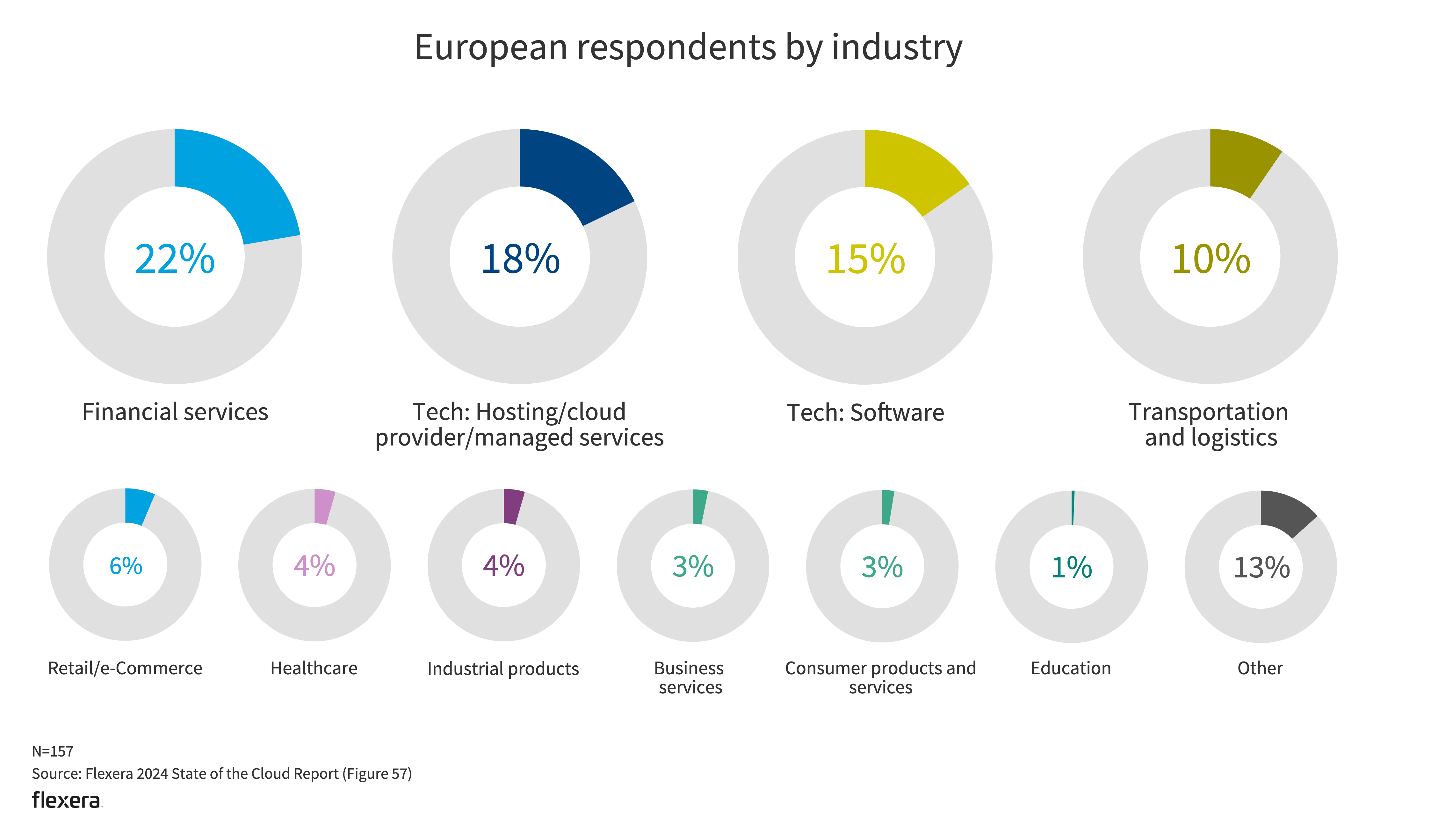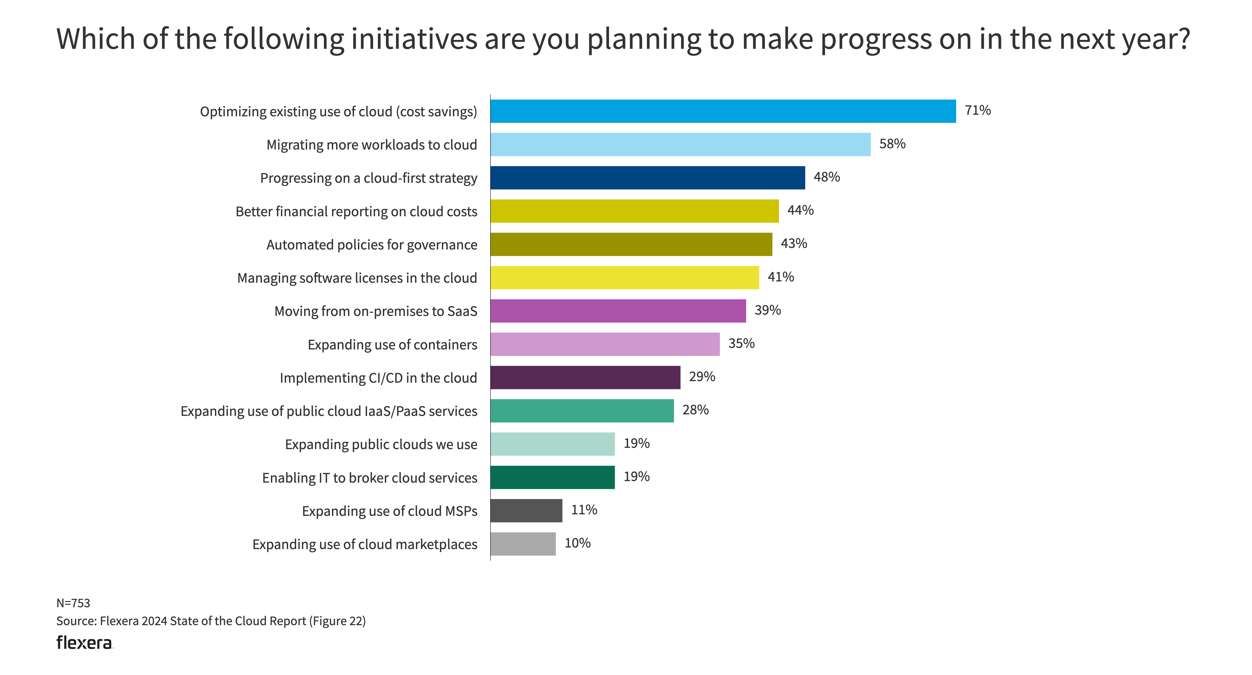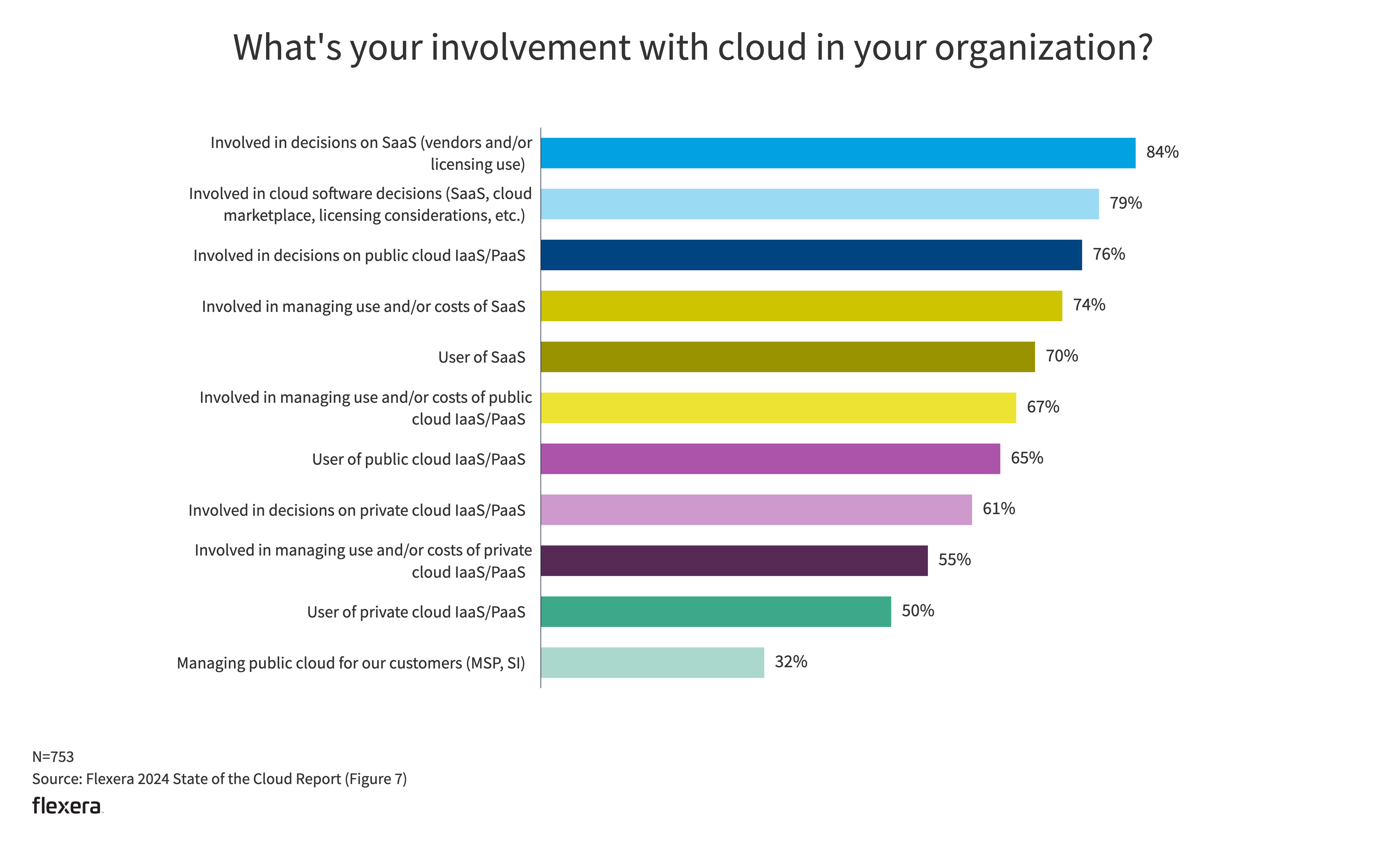 The Flexera State of the Cloud survey tapped 753 technical professionals and executive leaders worldwide in the winter of 2023. The network includes professionals across industries and context areas.