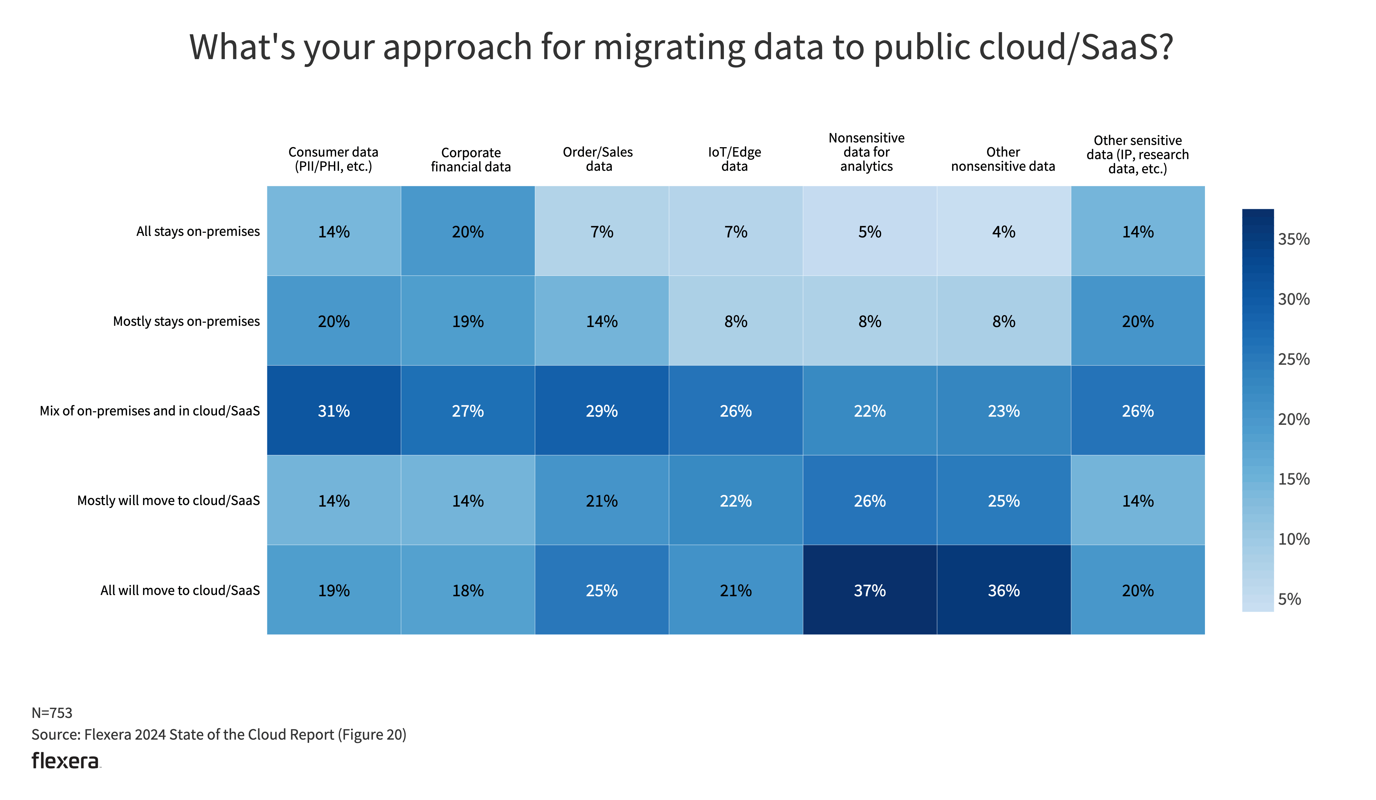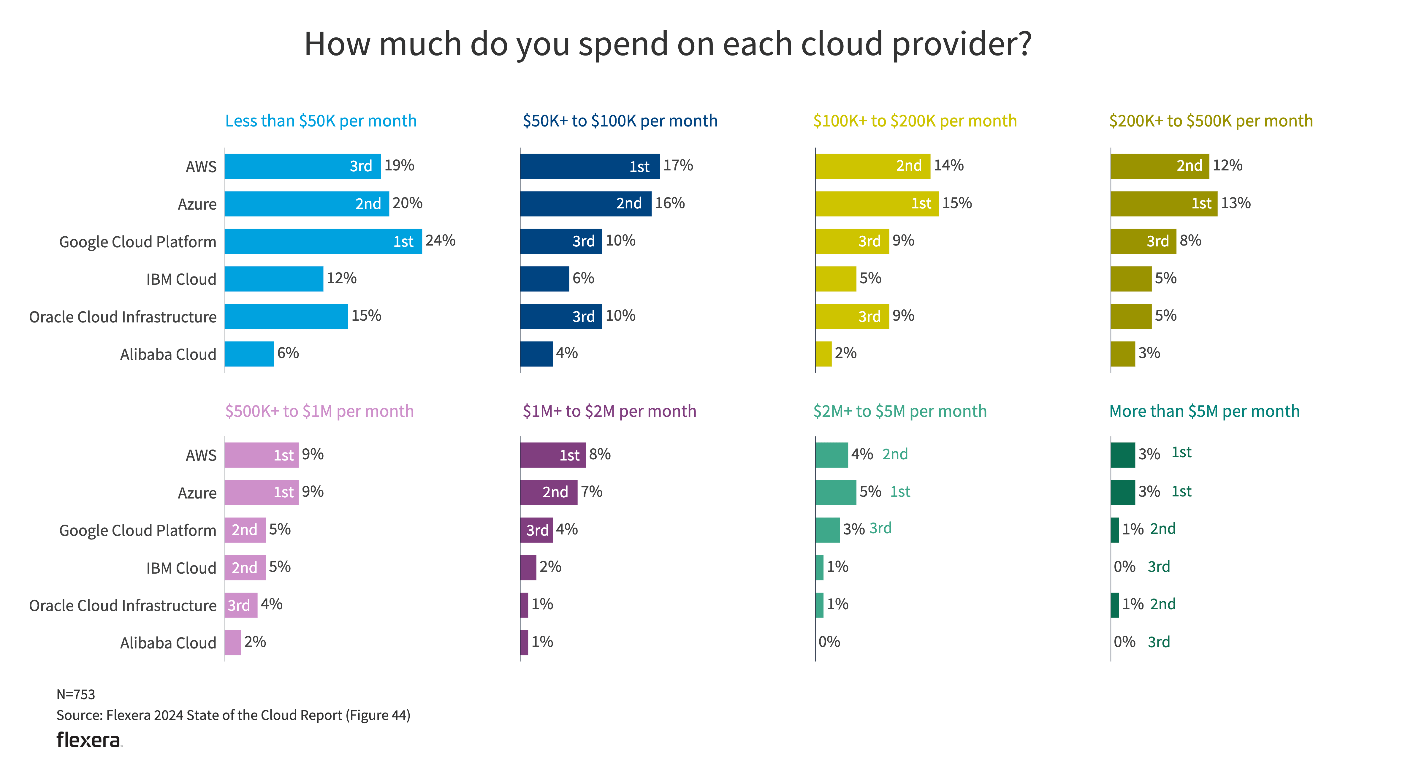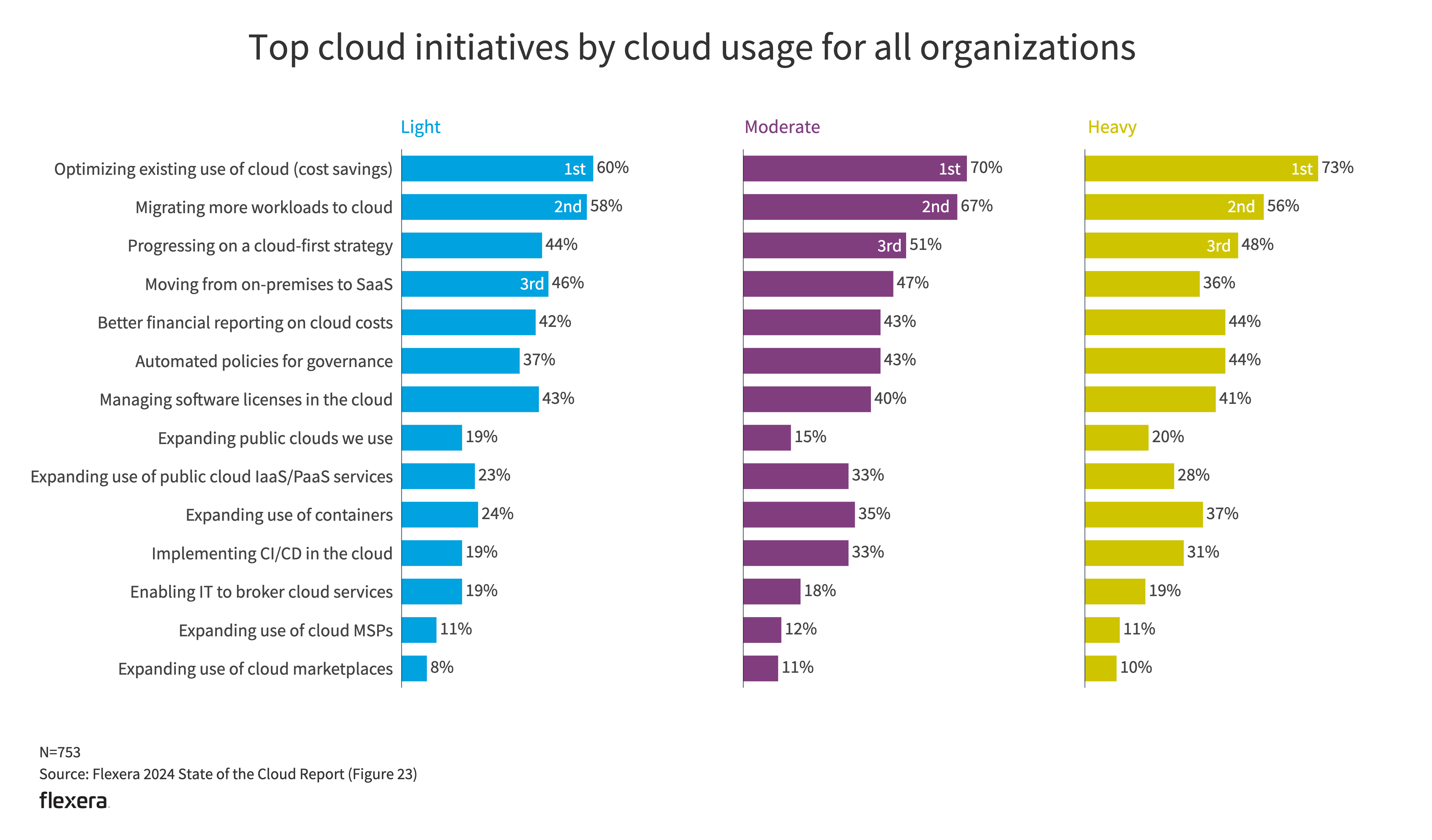 The Flexera State of the Cloud survey tapped 753 technical professionals and executive leaders worldwide in the winter of 2023. The network includes professionals across industries and context areas.