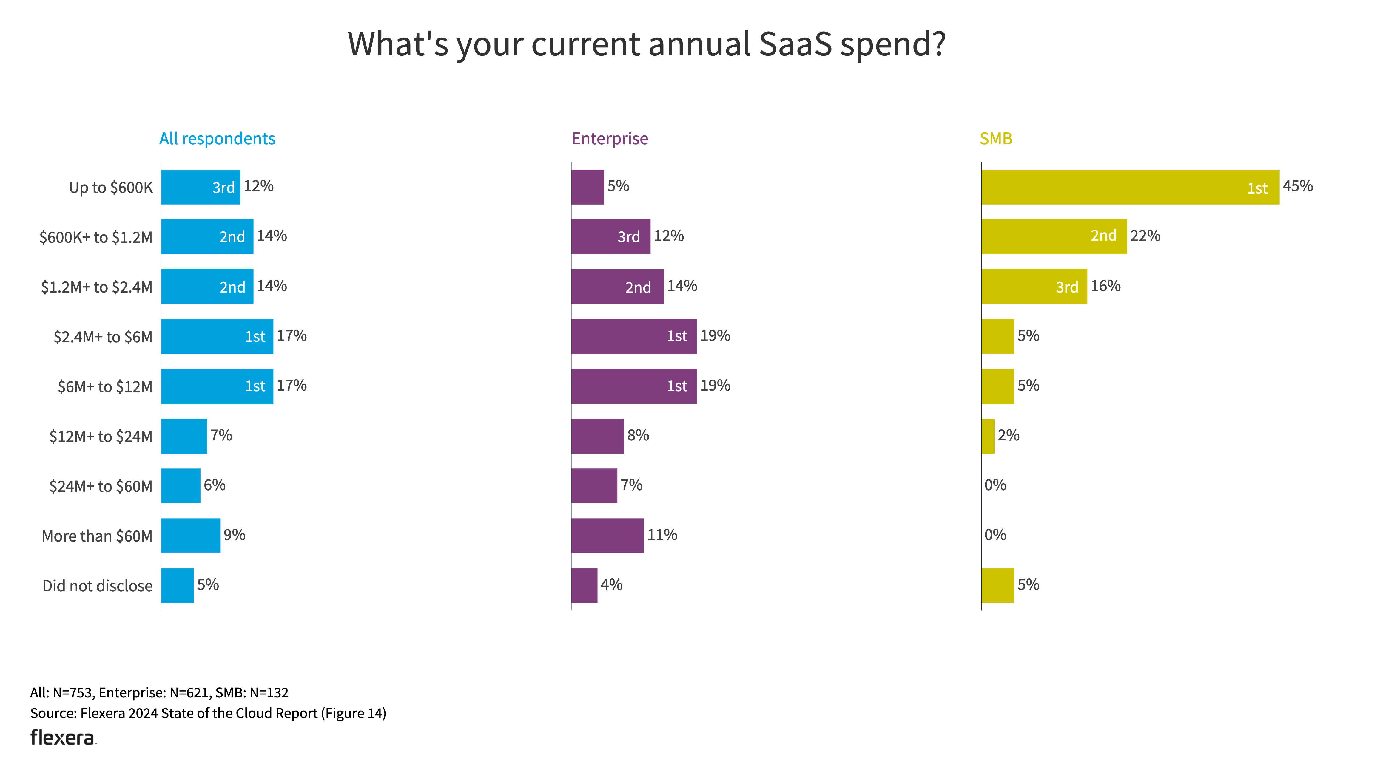 Nearly a quarter of respondents (22%) are currently spending more than $12 million per year on SaaS. This increases to 26% for enterprises.