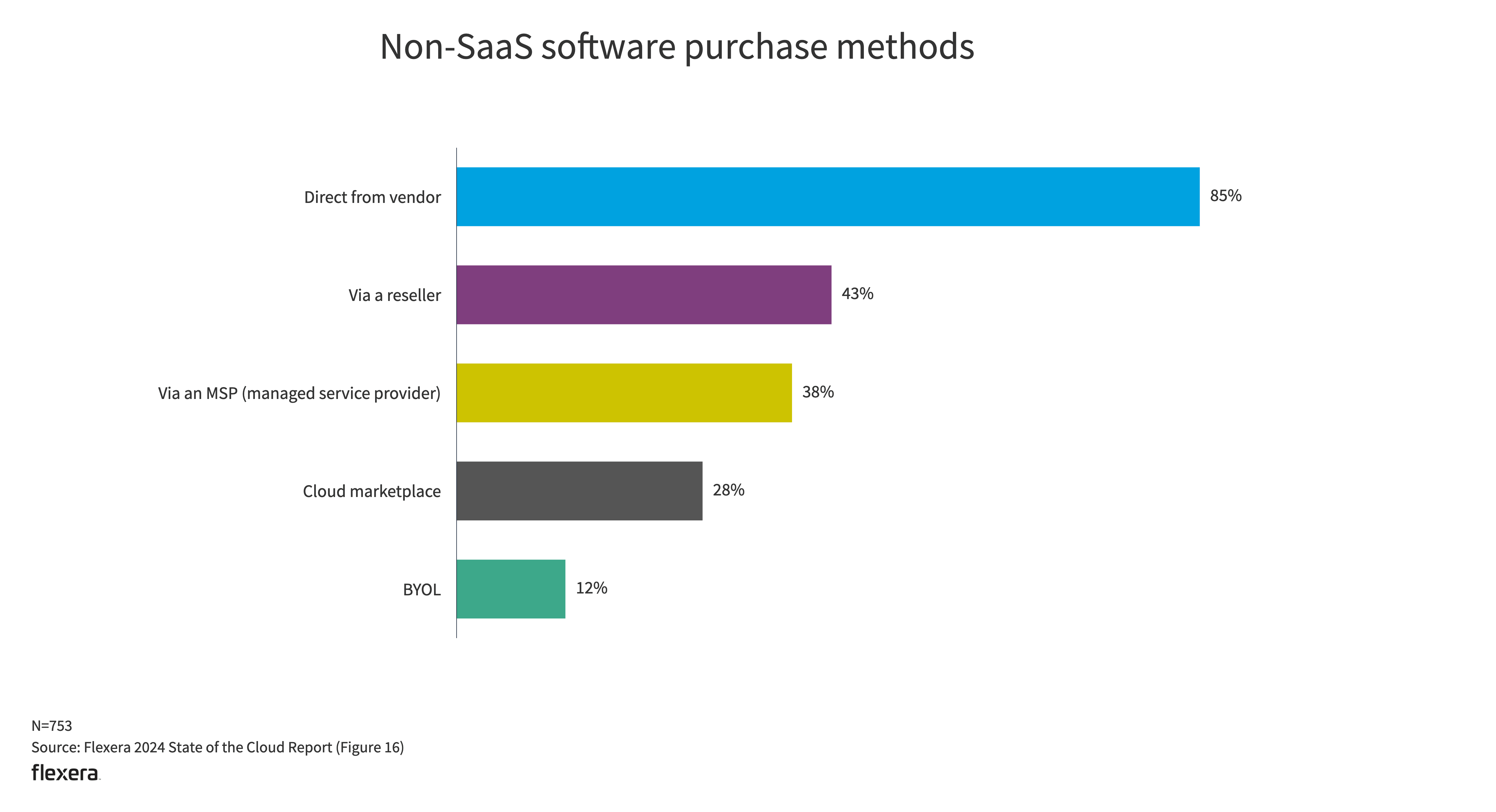 In addition, the vast majority of non-SaaS software purchases are made directly from the vendor (85%), with the primary vendor being Microsoft. These purchases are most likely made under an existing enterprise agreement (EA).