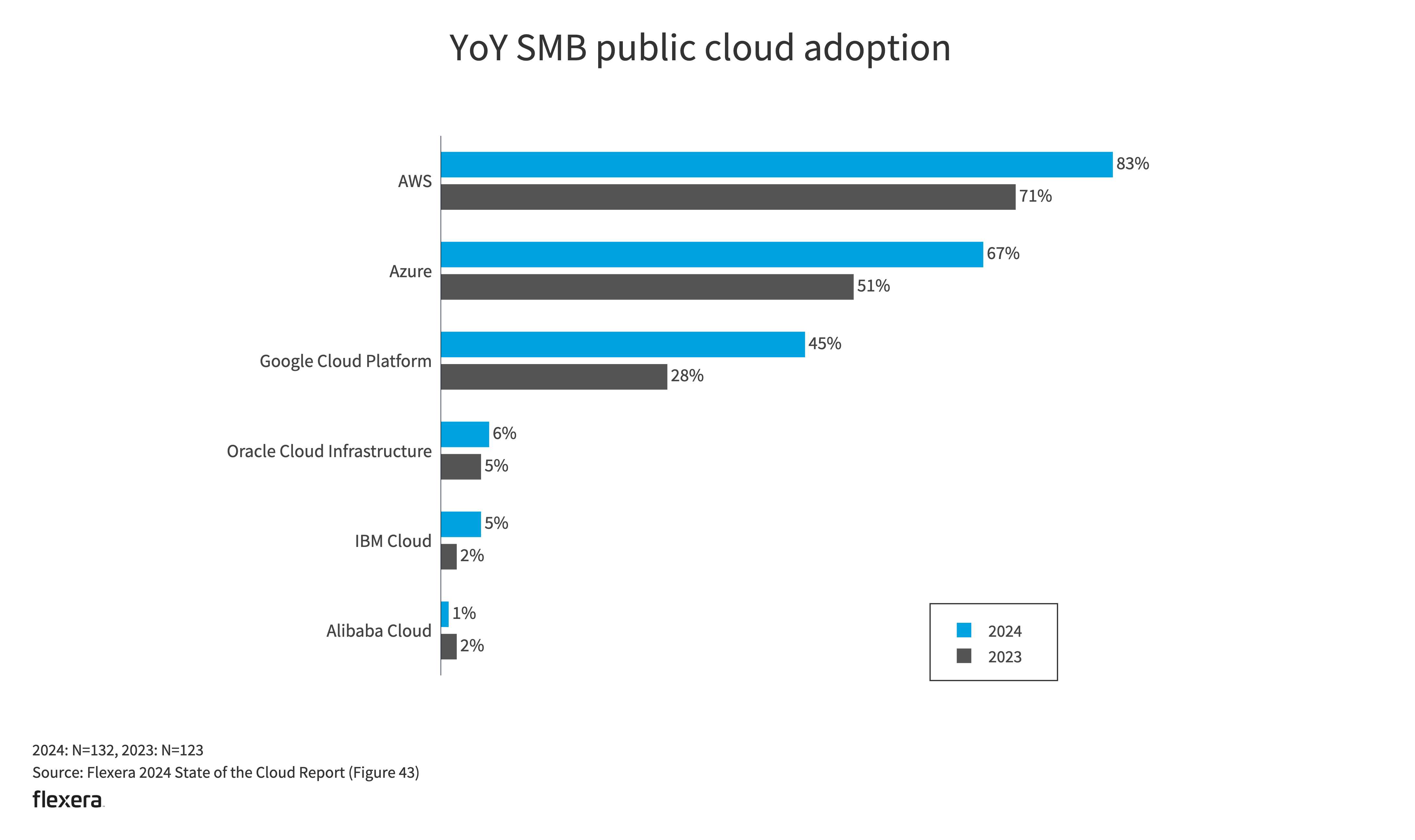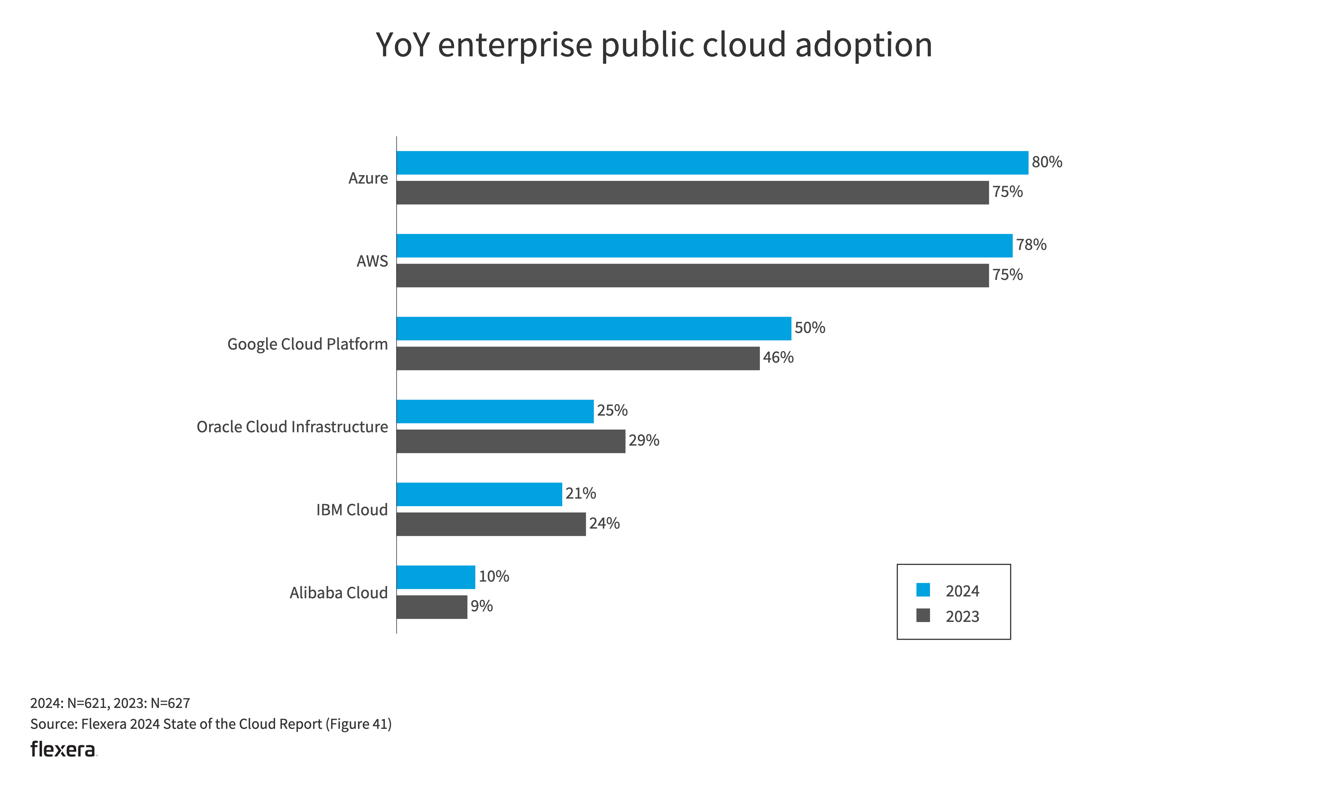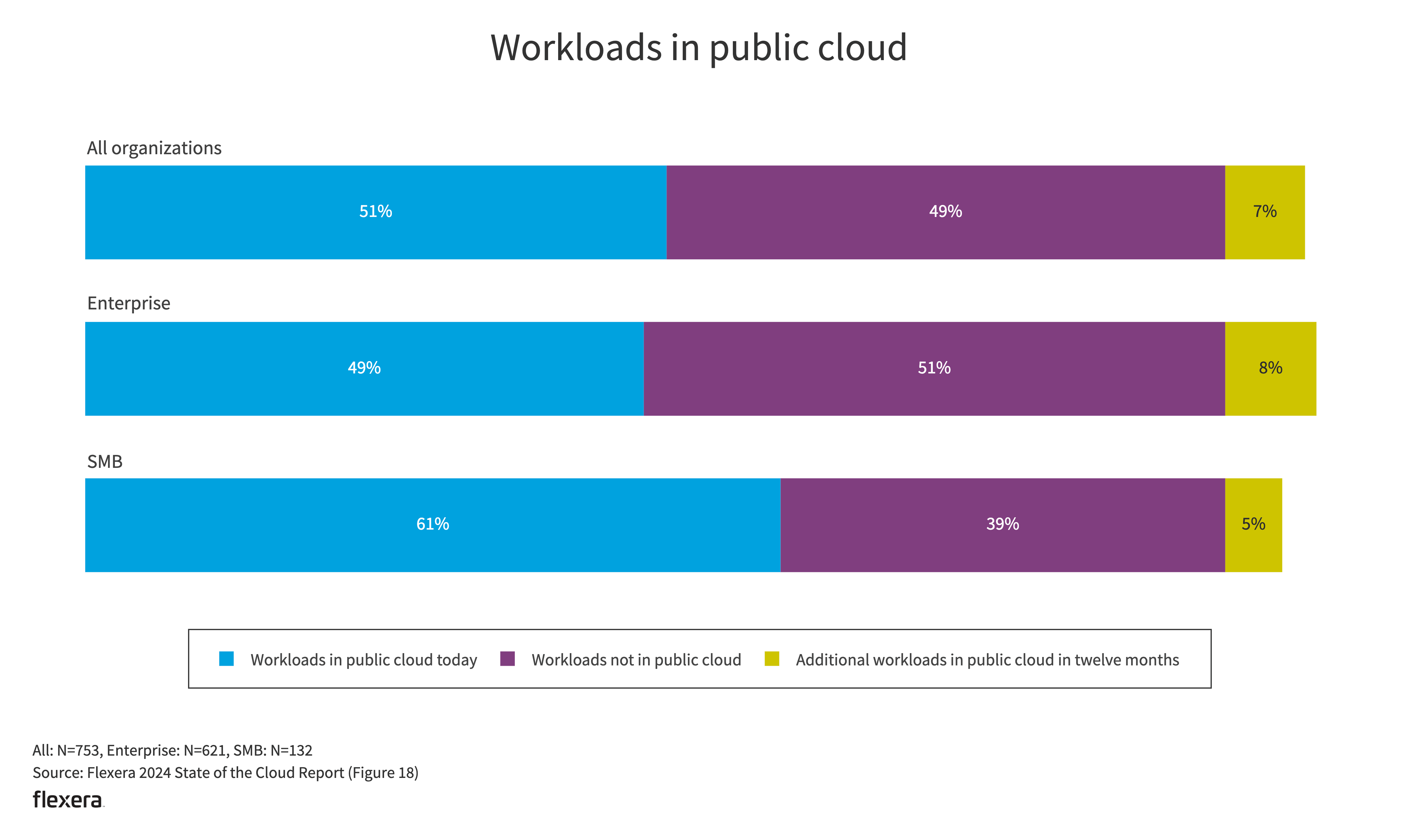 Hybrid, public cloud only and private cloud only remained similar YoY.