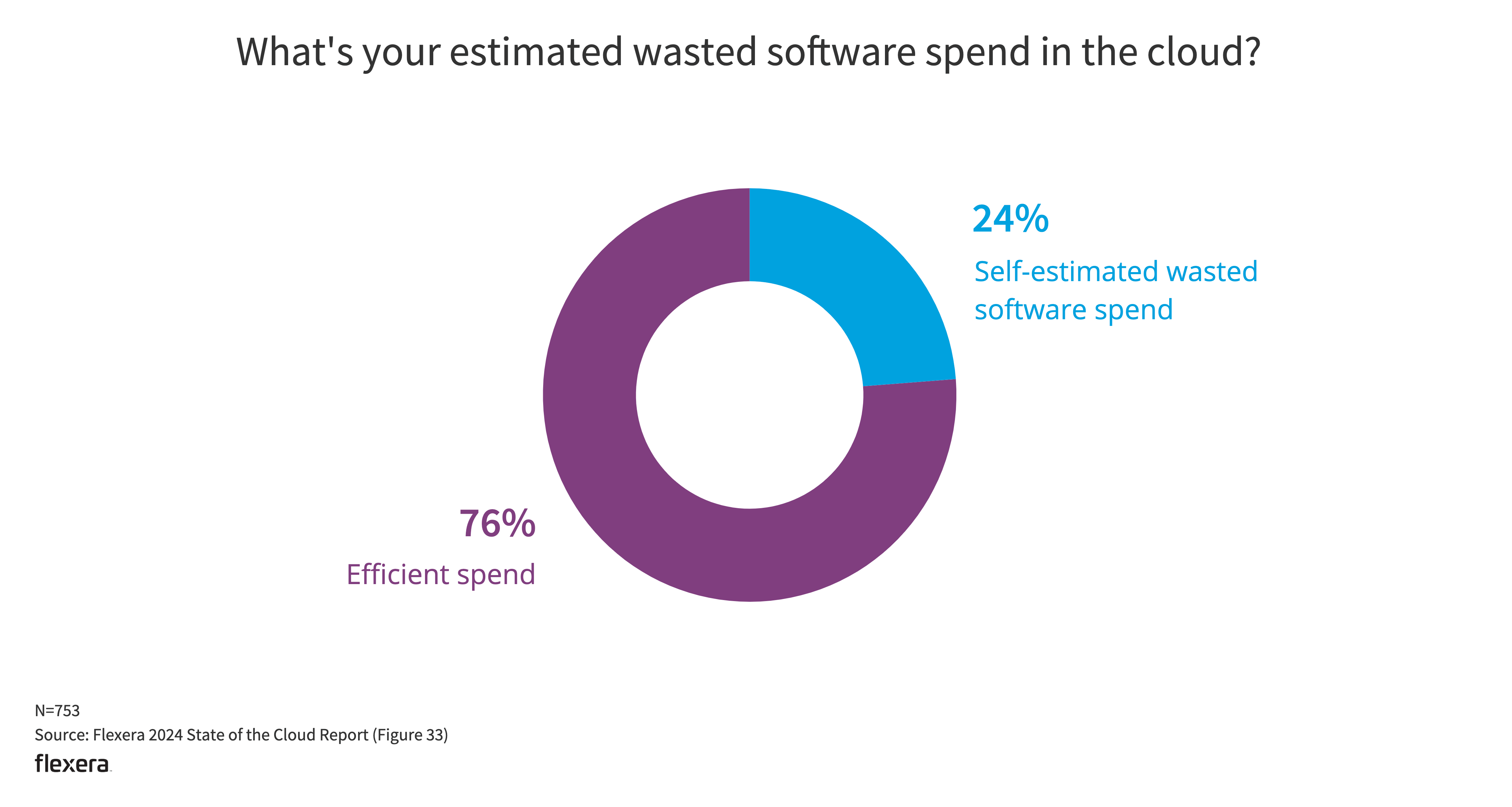 Software licenses can greatly impact the total cost of an application running in the cloud. Respondents reported that wasted software spend in the public cloud was 24%.