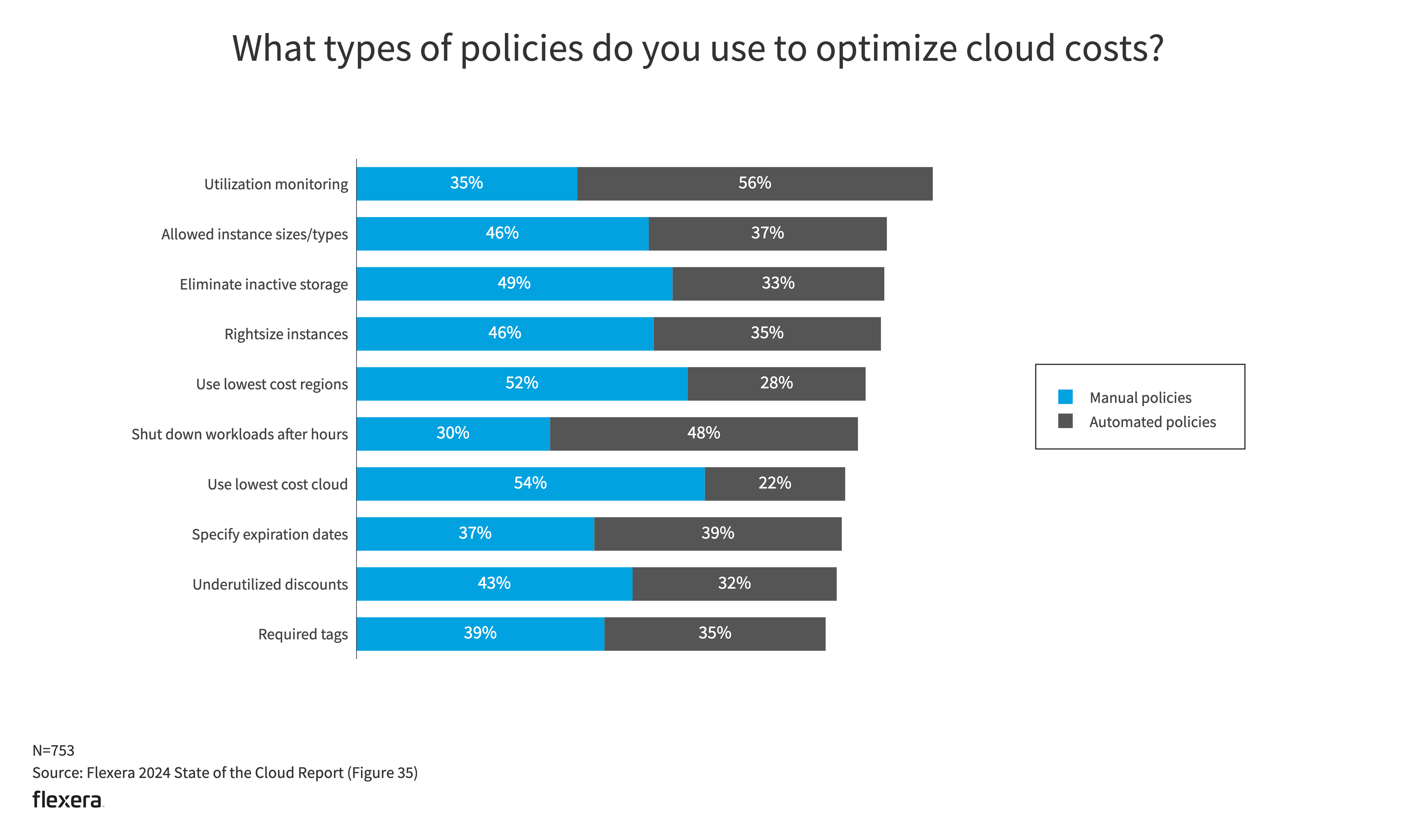 Despite tags being critical to cost allocation and optimization, only 35% of organizations currently use automated policies that implement required tags.