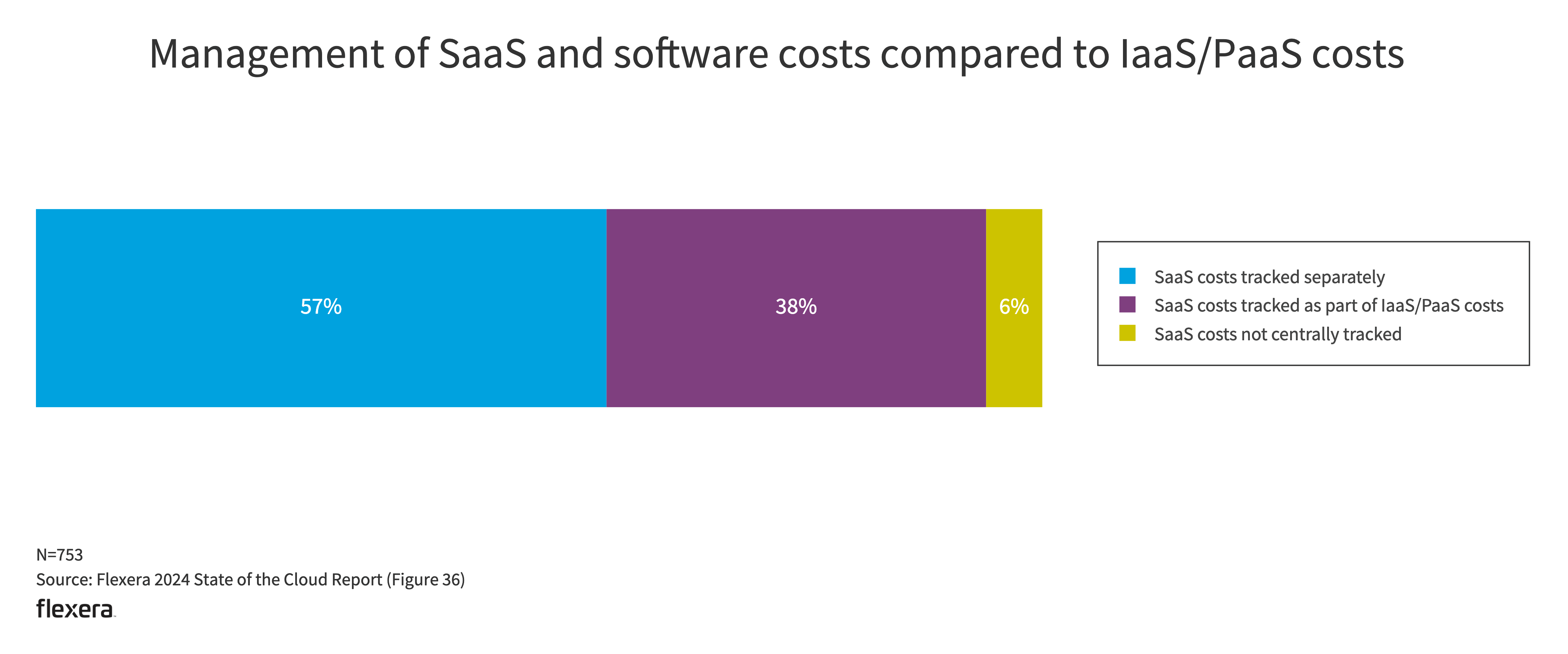 This year we asked survey respondents to weigh in on how they managed SaaS and software costs. For the majority of organizations (57%), SaaS costs are tracked separately from IaaS and PaaS costs.