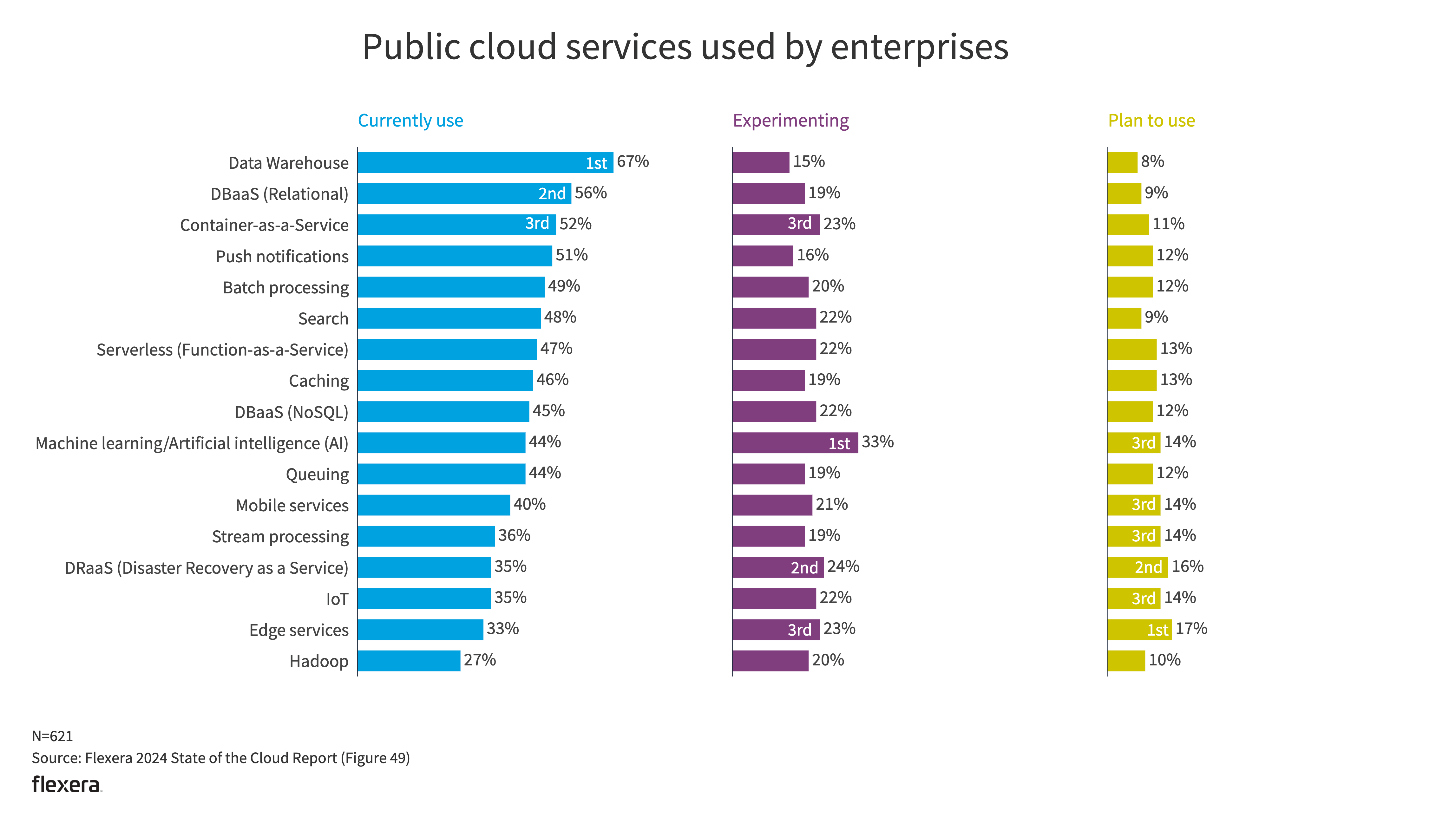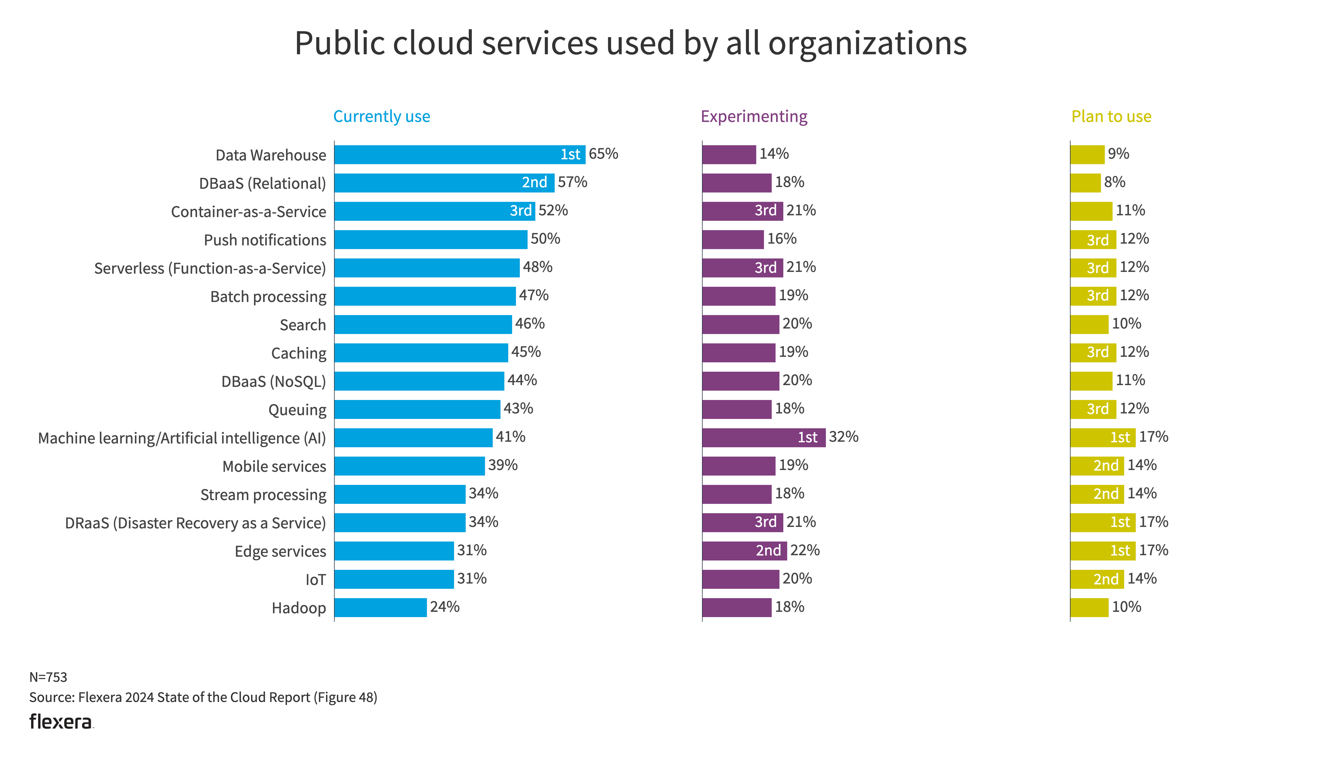 Although current AI/ML usage is only at 41% with all respondents, Flexera expects this to increase significantly in the coming years as more and more organizations leverage the emerging GenAI services offered by public cloud providers.