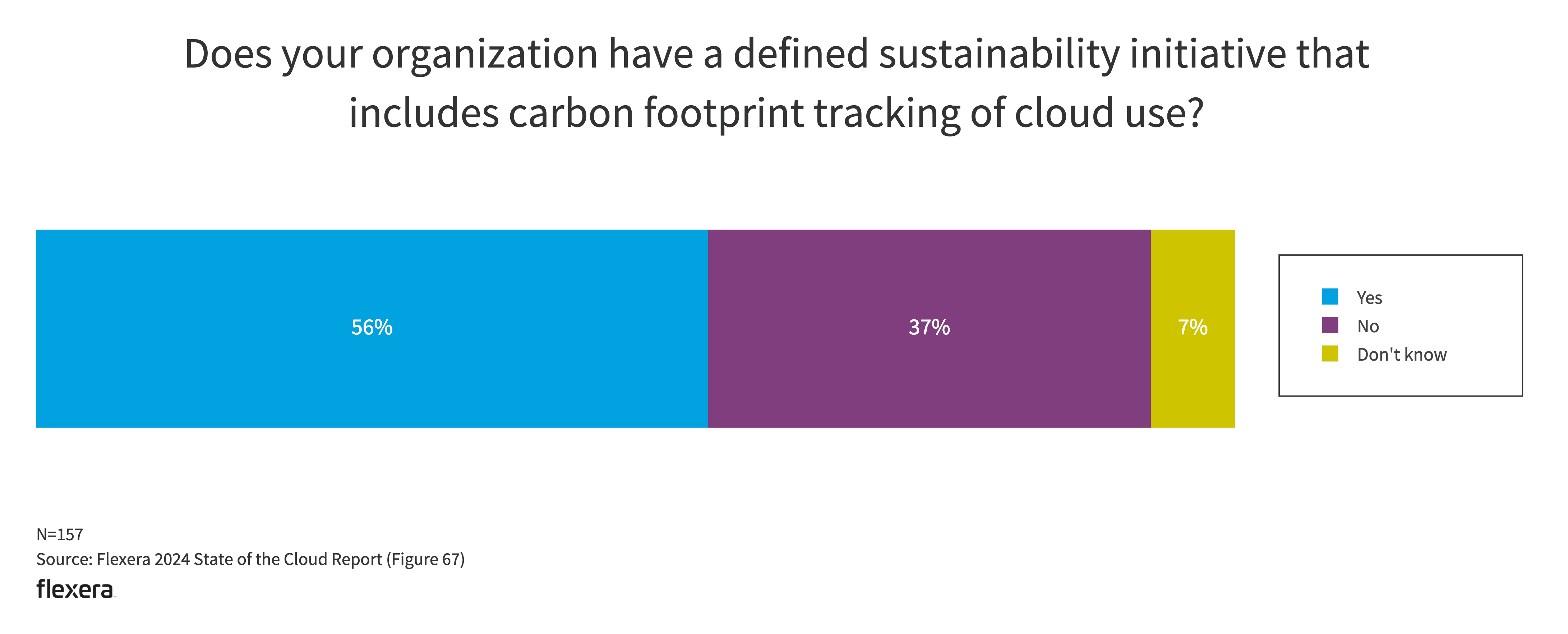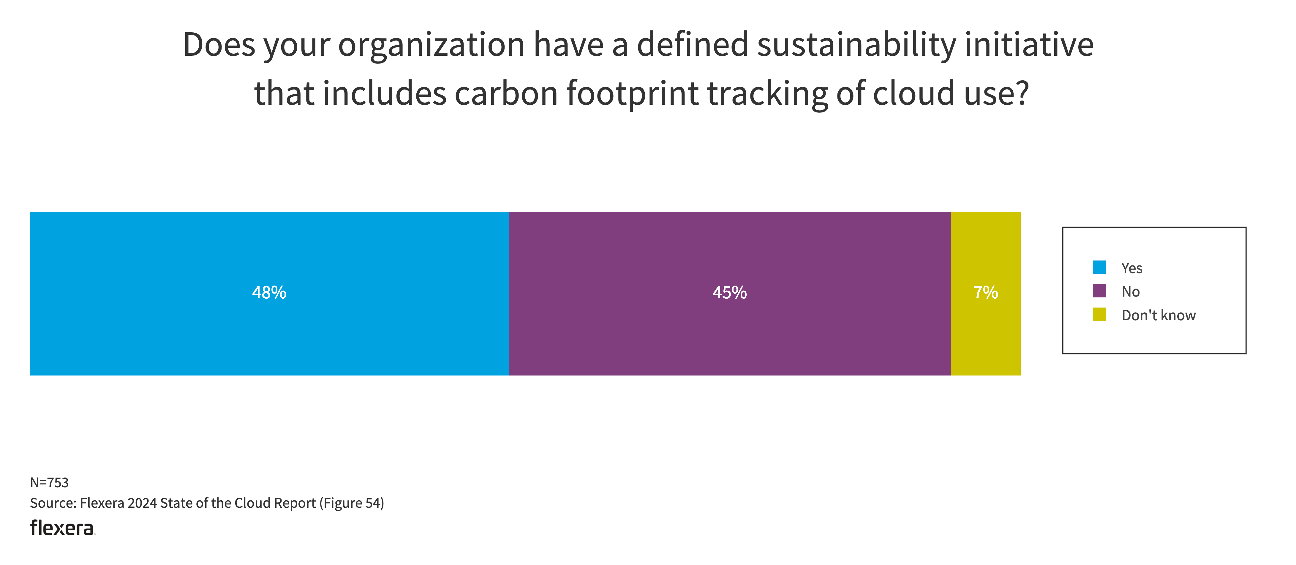 Forty-eight percent of respondents say they already have defined sustainability initiatives, including tracking the carbon footprint of cloud usage. When asked how sustainability compares to cost optimization, 59% prioritized cost optimization.