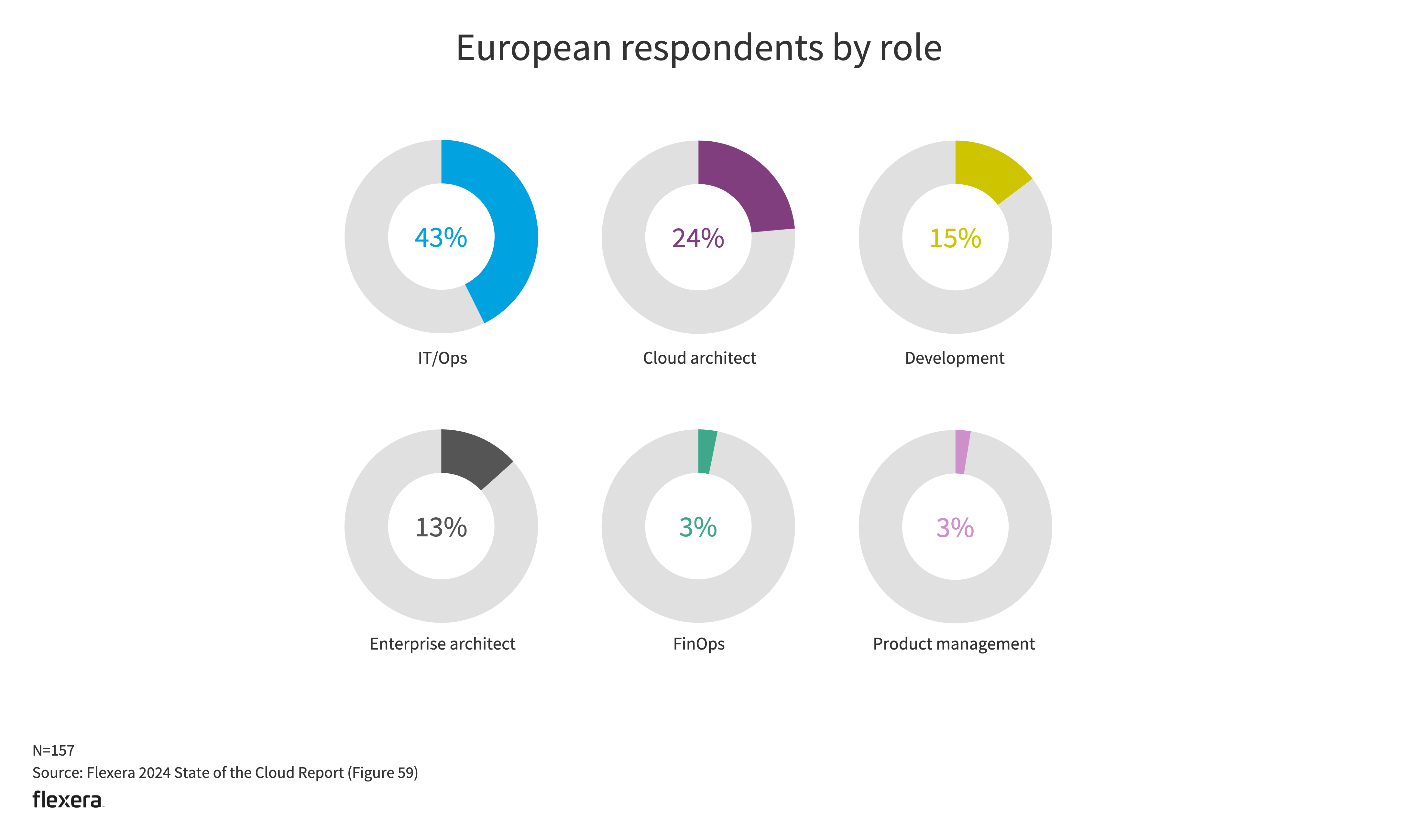 The global and European data about roles is mostly consistent across respondent pools. One exception is FinOps, where European respondents were at 3%, compared to 8% globally.