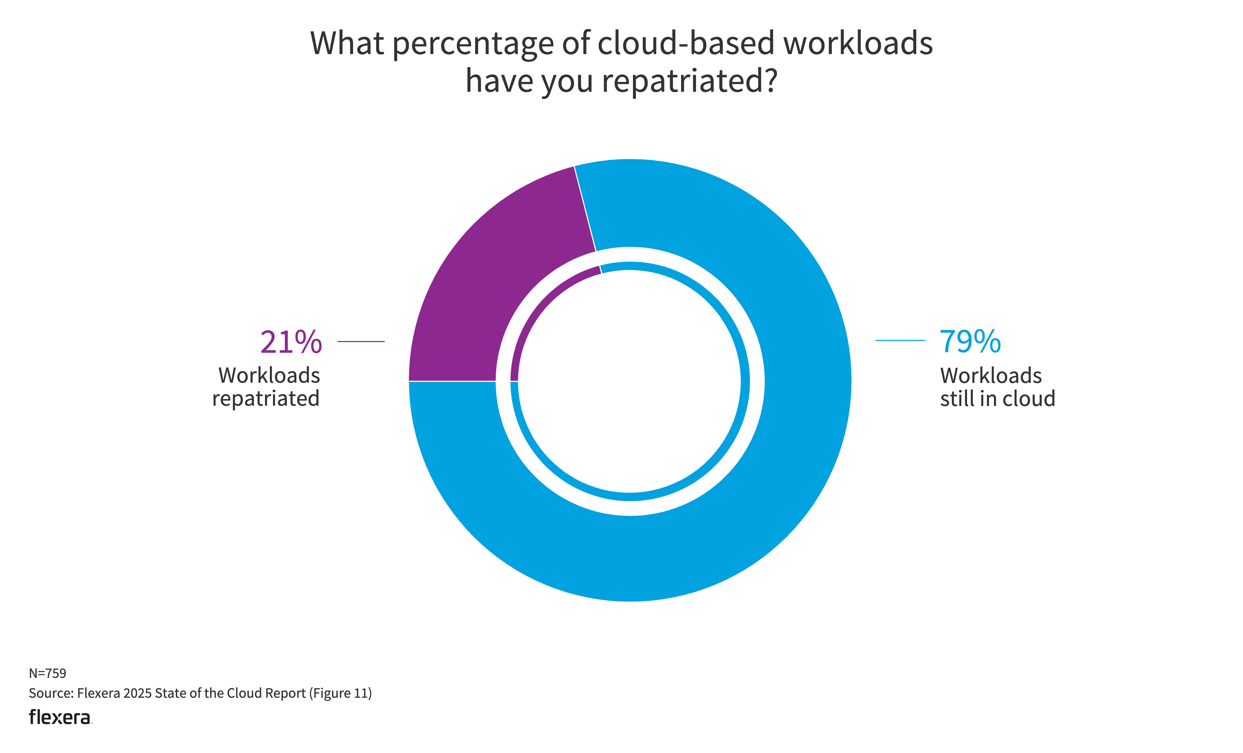 We’ve recently begun asking about workload and data repatriation. Respondents indicated one fifth of both workloads and data have been repatriated (21%). We plan on following this trend moving forward.