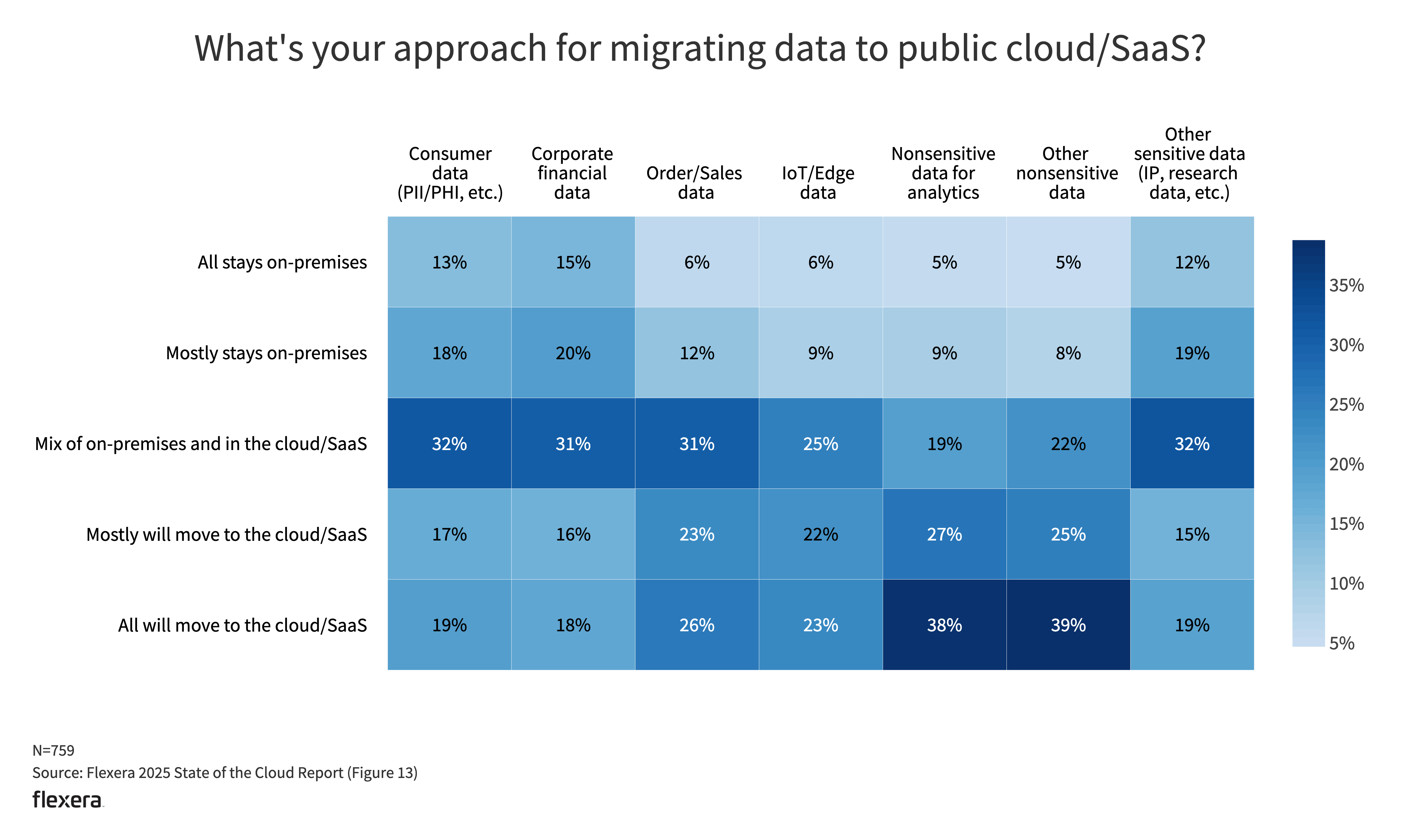 That being said, organizations are still more reticent to move sensitive data to the cloud, although more than one third indicate all nonsensitive data will move to the cloud.