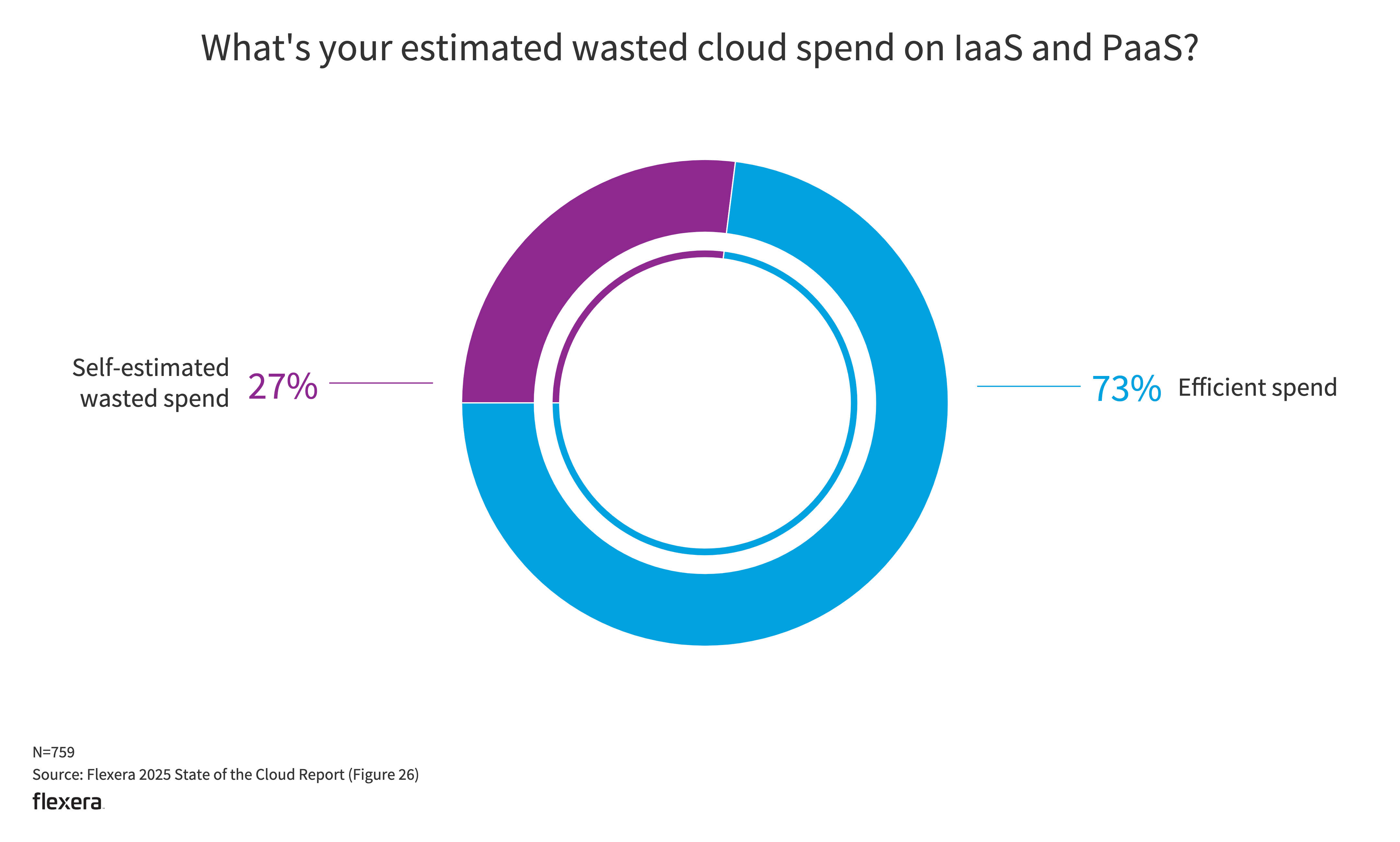 Estimated wasted cloud spend on IaaS and PaaS has decreased to 27% this year