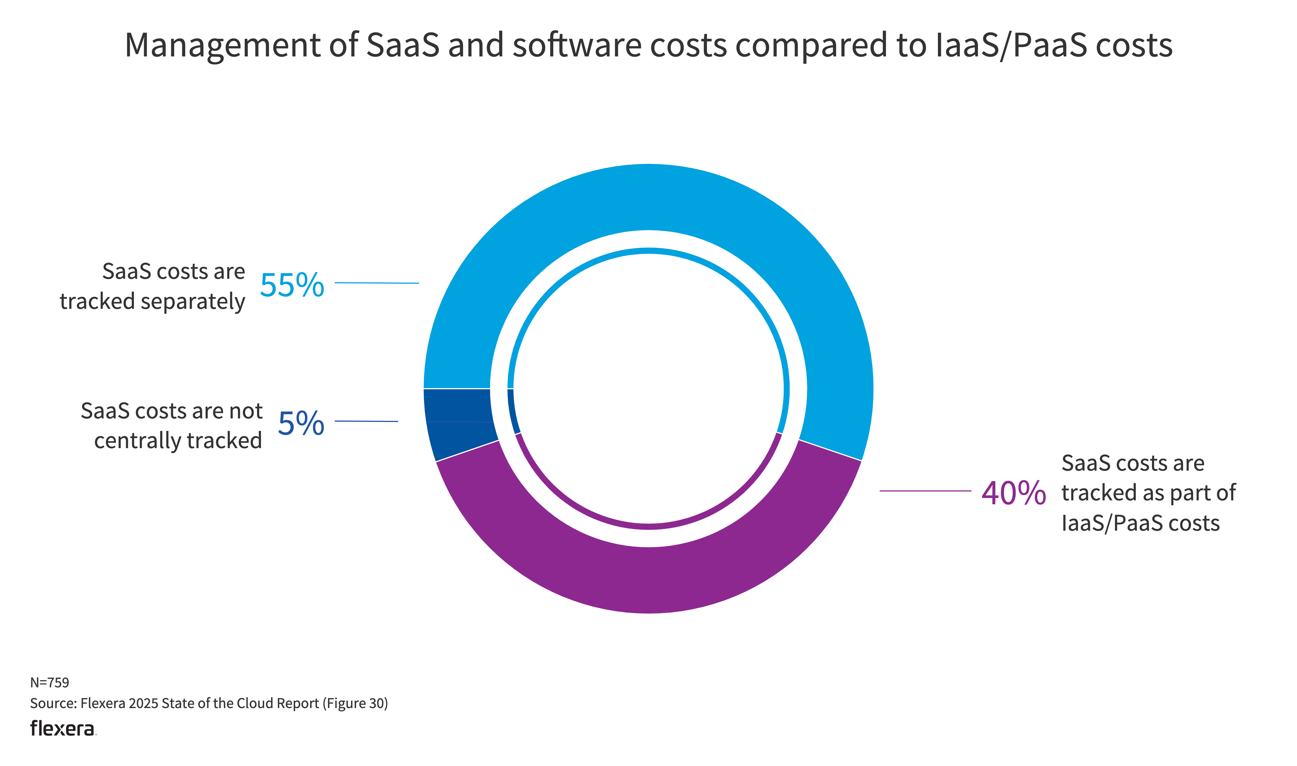 For most organizations, SaaS costs continue to be tracked separately from IaaS and PaaS costs.