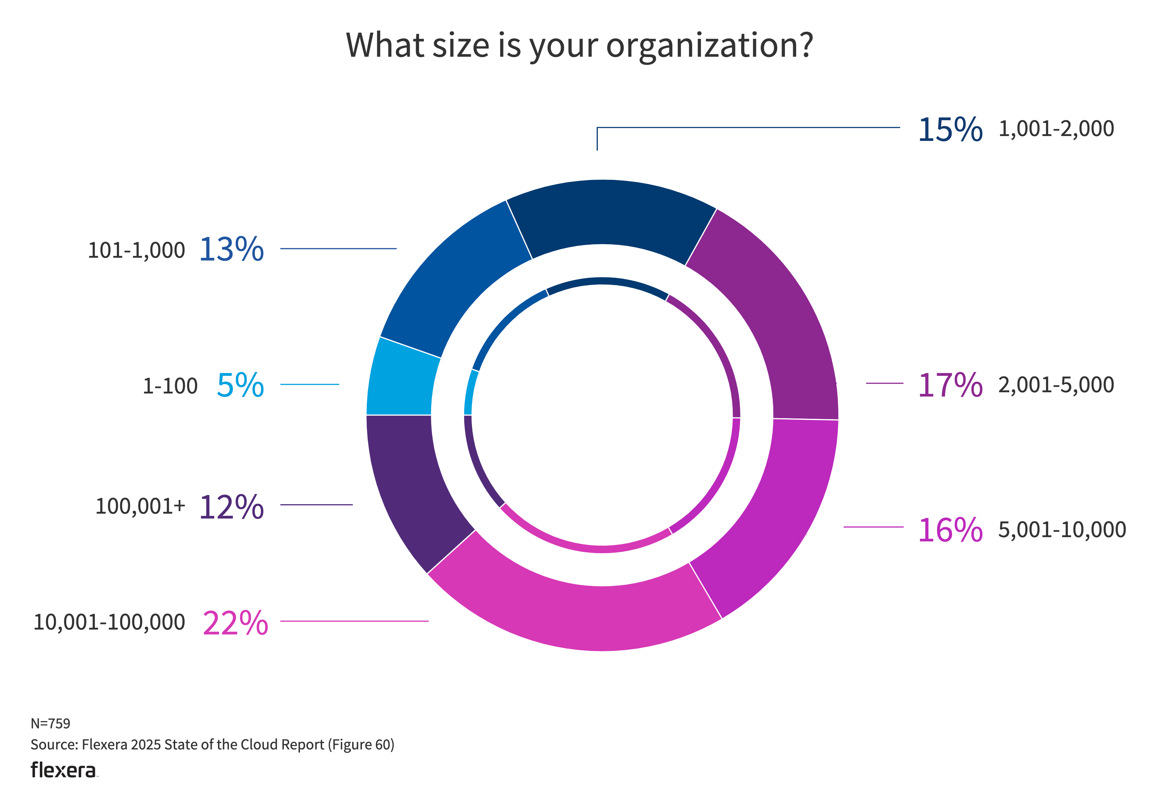 Flexera sources participants from an independent panel that’s rigorously maintained and is comprised of vetted respondents with detailed profiles. All numbers and percentages are rounded to the nearest whole number.