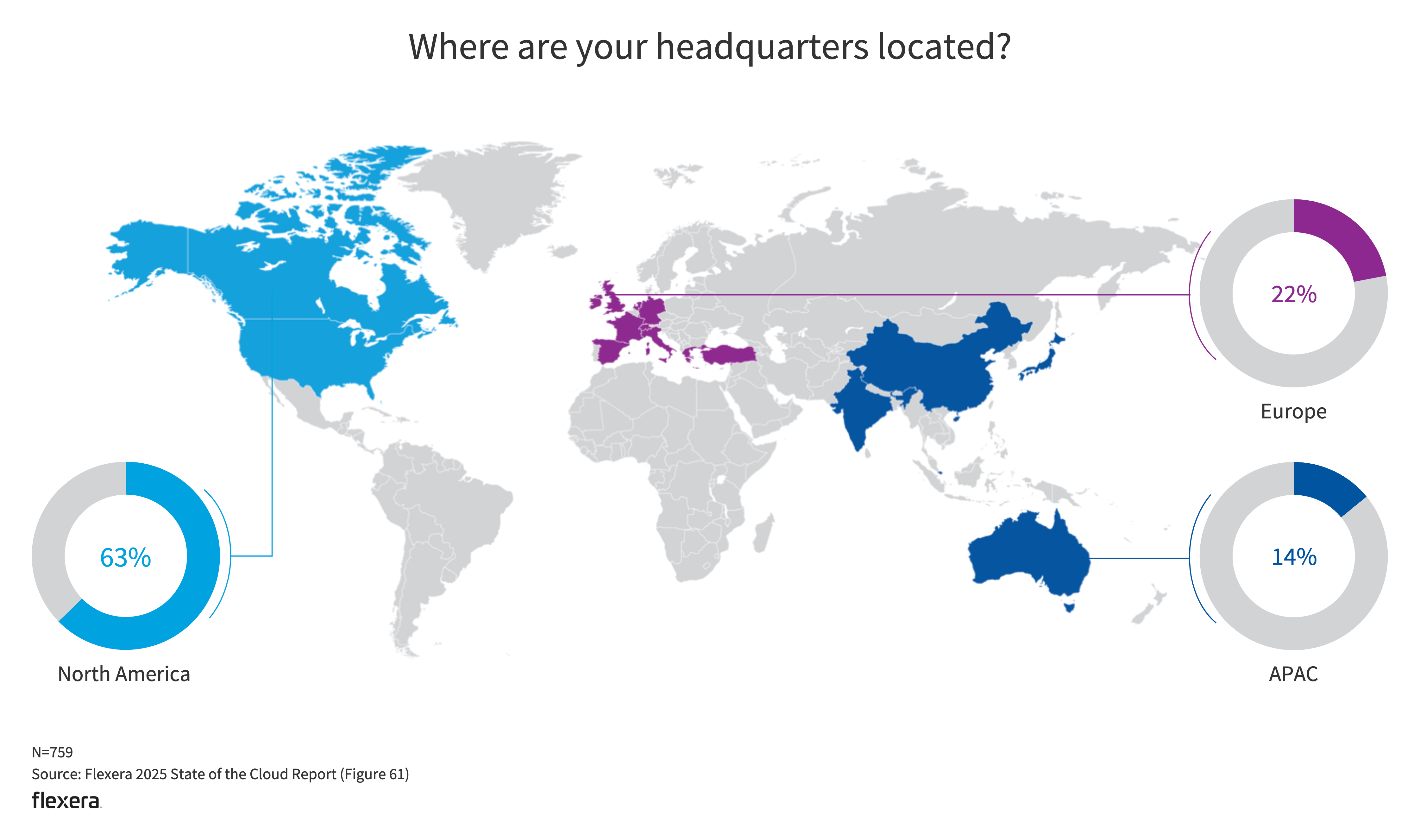 This year, there’s a slight uptick in the number of enterprises surveyed with more than 100,000 employees (12% compared to 8% year over year), and 63% are in North America.