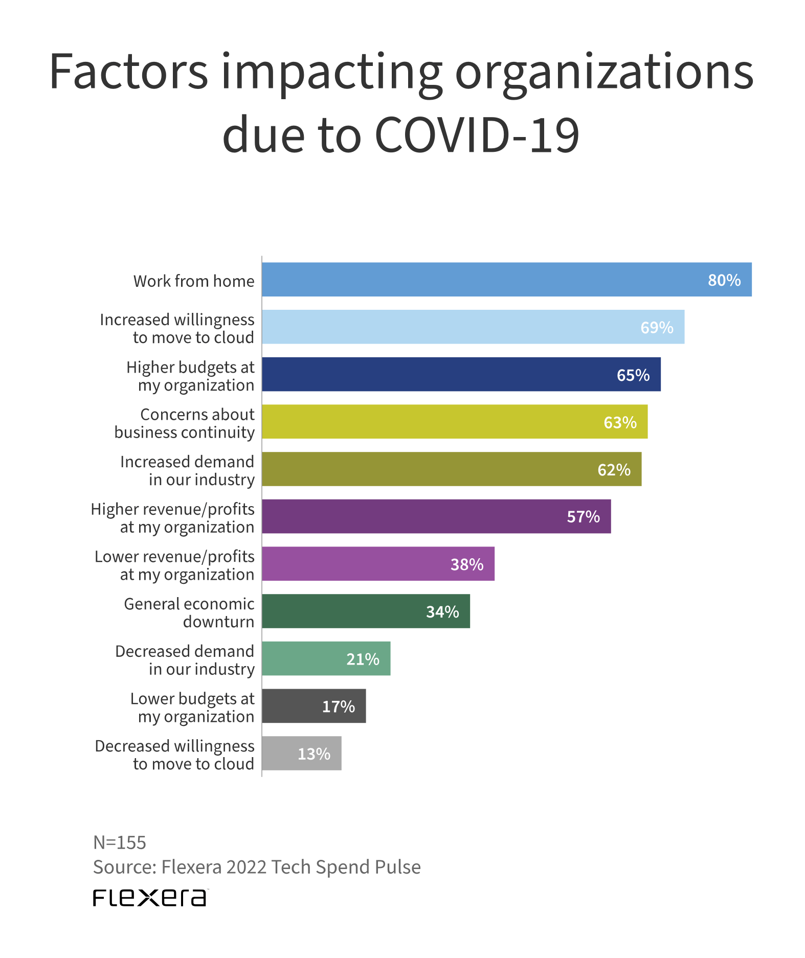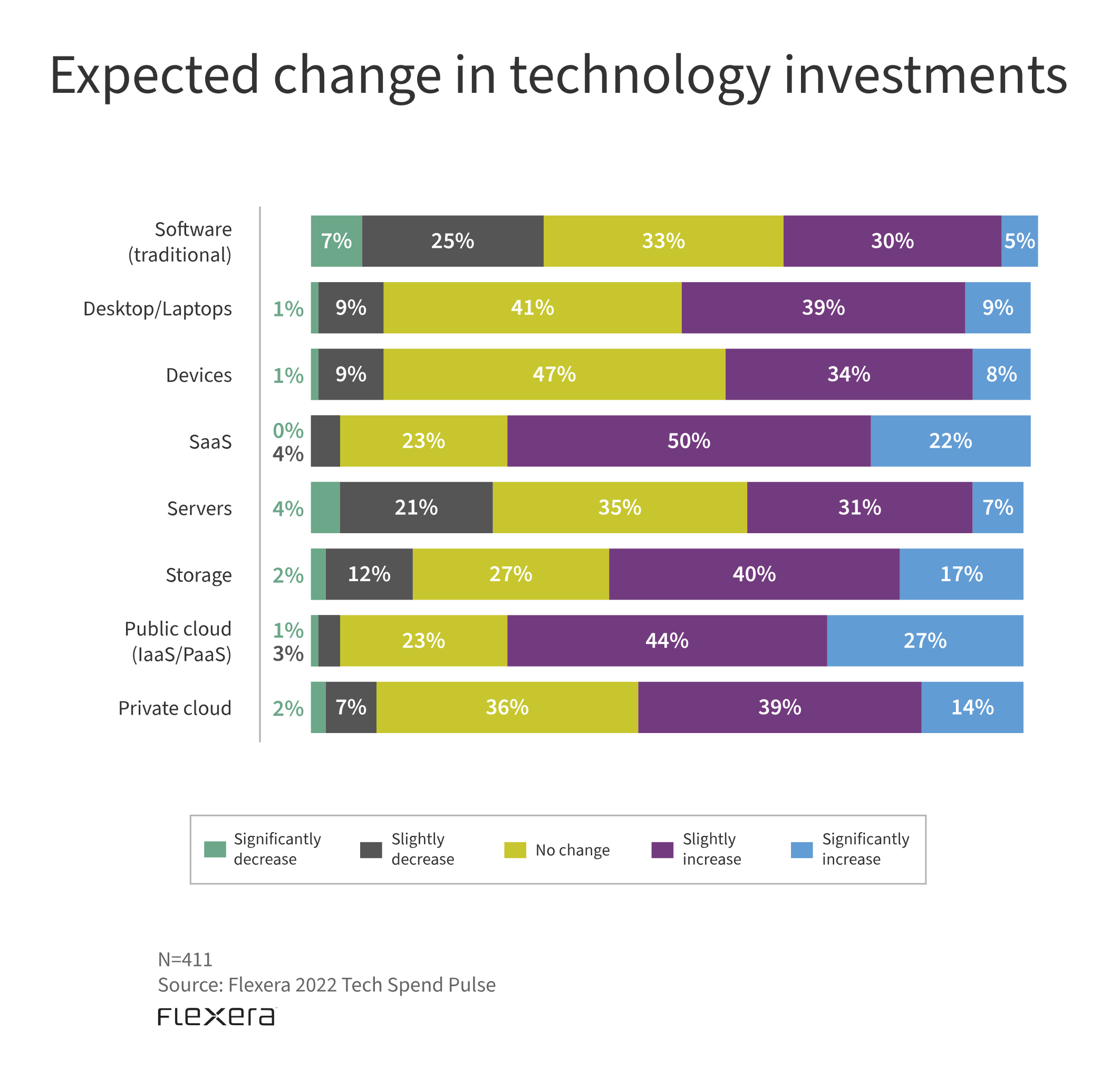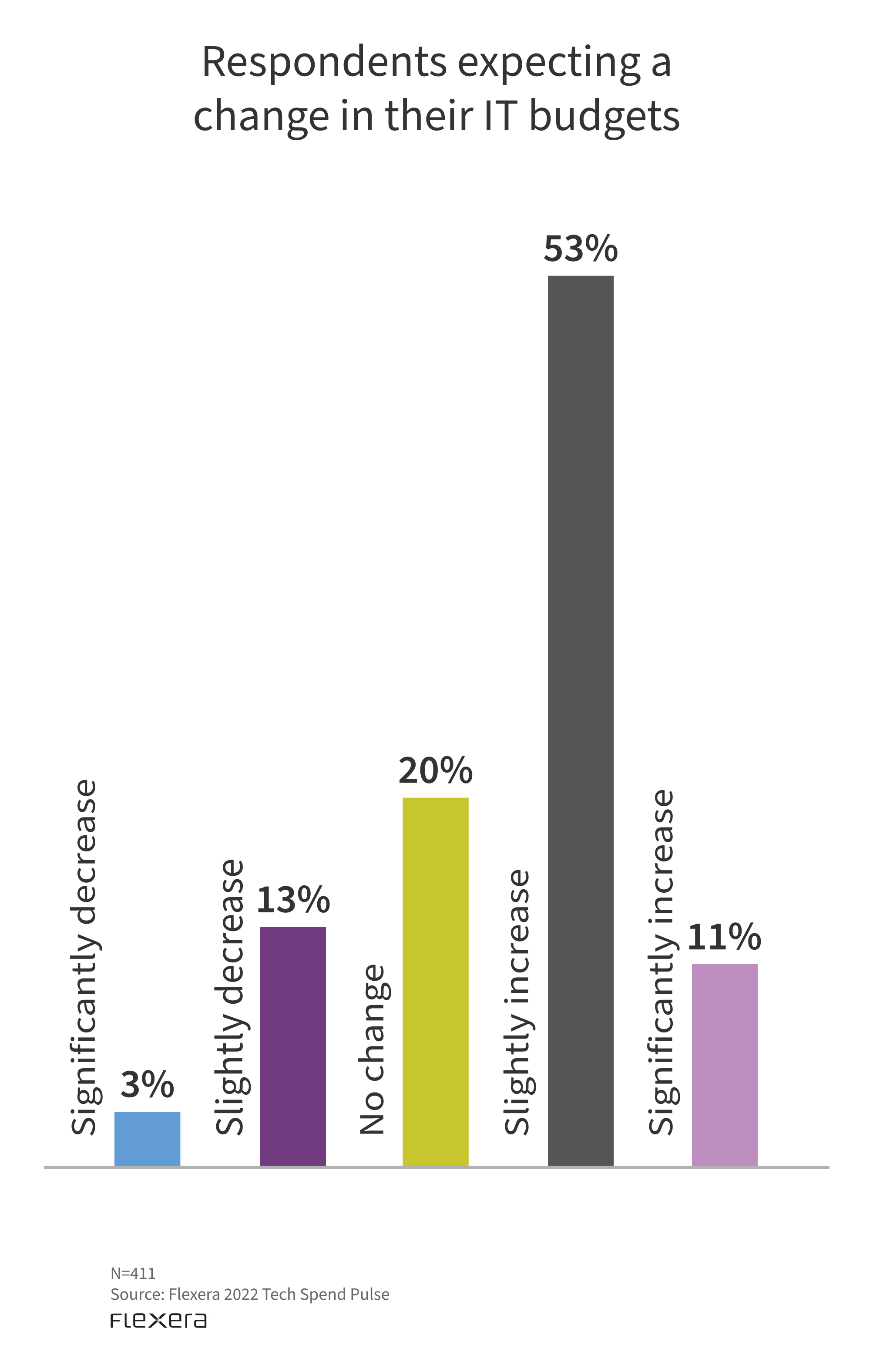 We encourage the reuse of data, charts and text published in this pulse under the terms of this Creative Commons Attribution 4.0 International License. You are free to share and make commercial use of this work as long as you attribute the Flexera 2022 Tech Spend Pulse as stipulated in the terms of the license.