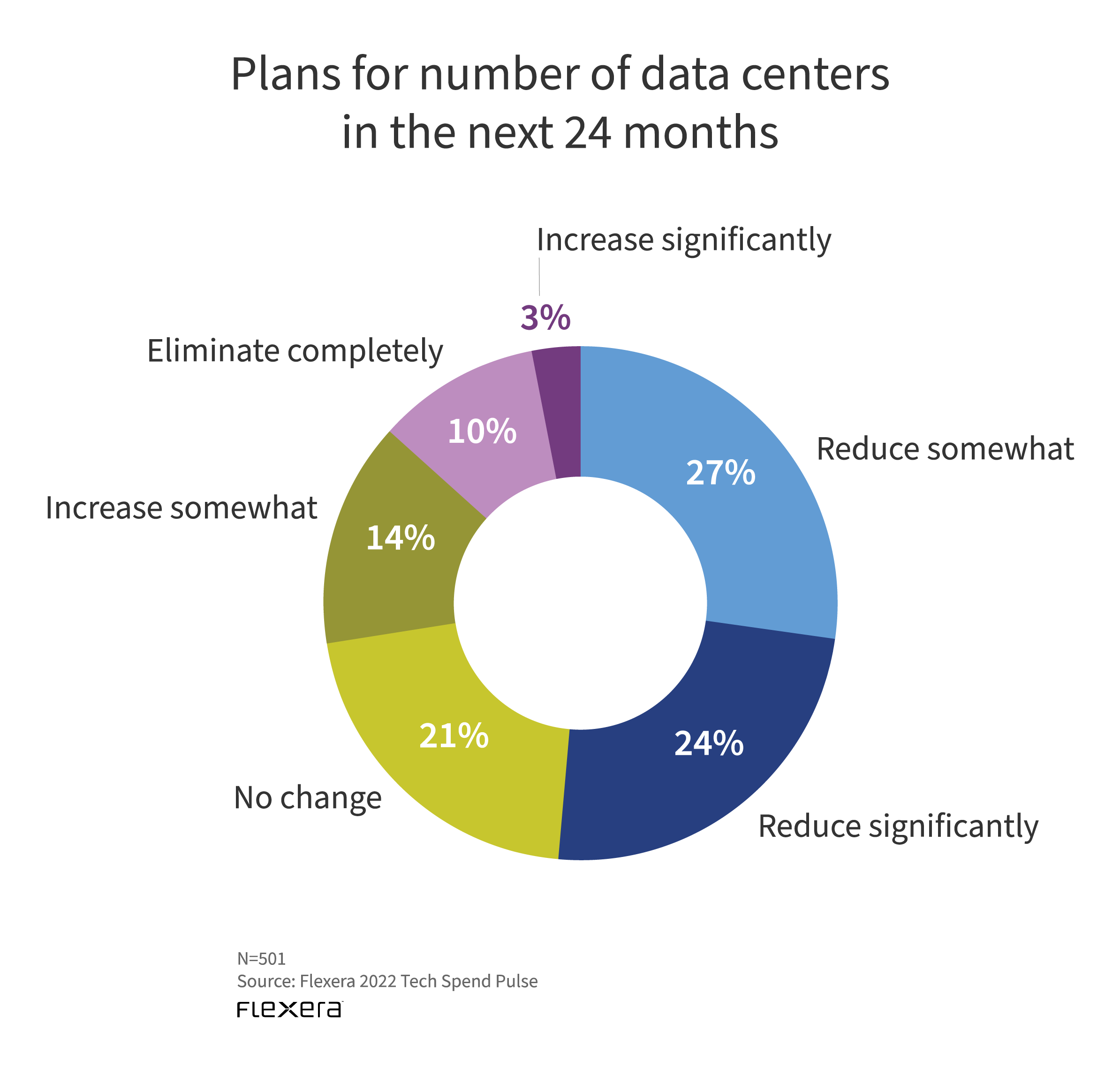 As organizations shift to the cloud, many are attempting to reduce the number of data centers they own and operate. Ten percent plan to eliminate data centers completely and 51% plan to reduce their data center footprint to some degree.