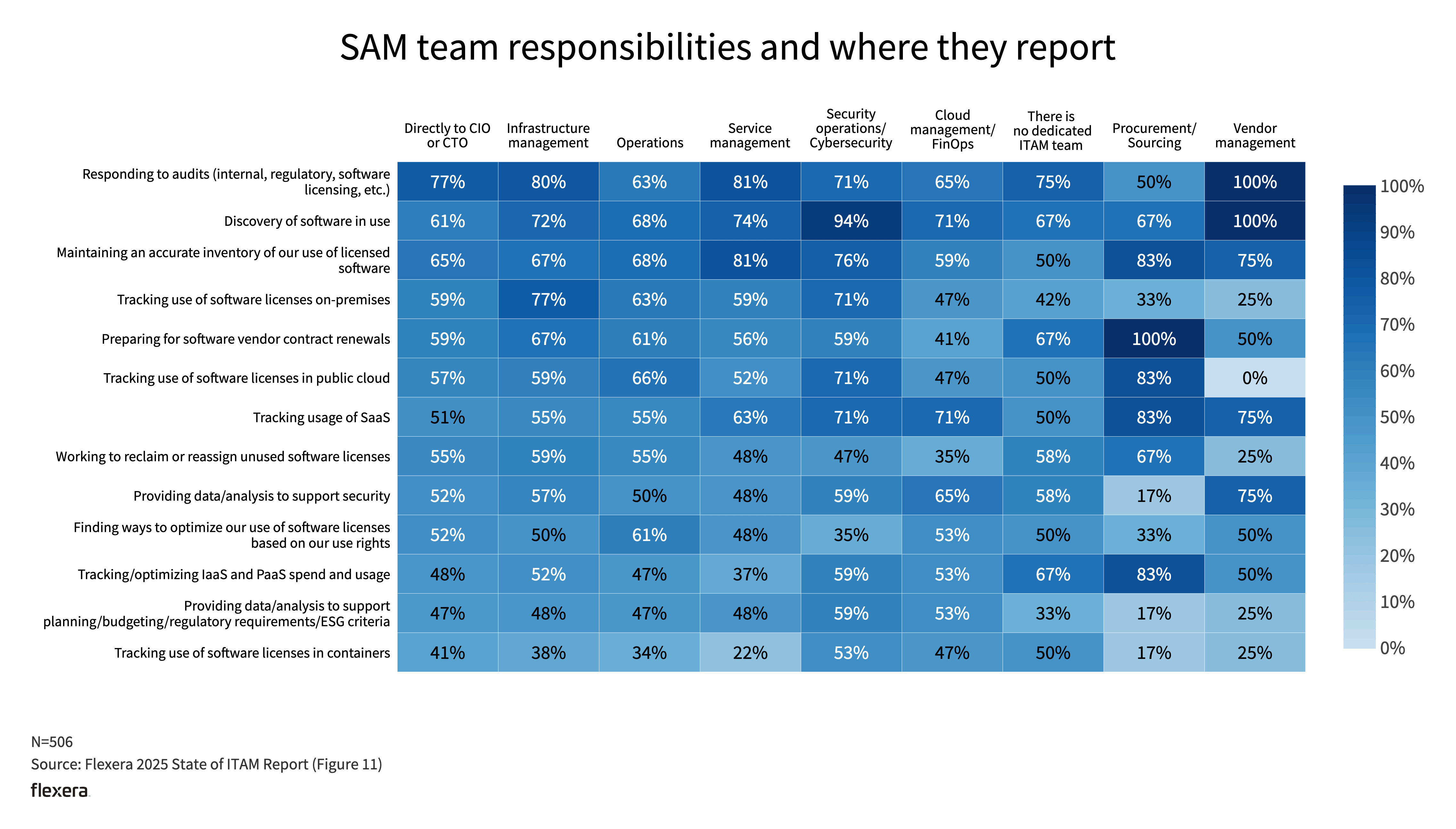 100% of SAM teams who report to procurement deal with software vendor contract renewals