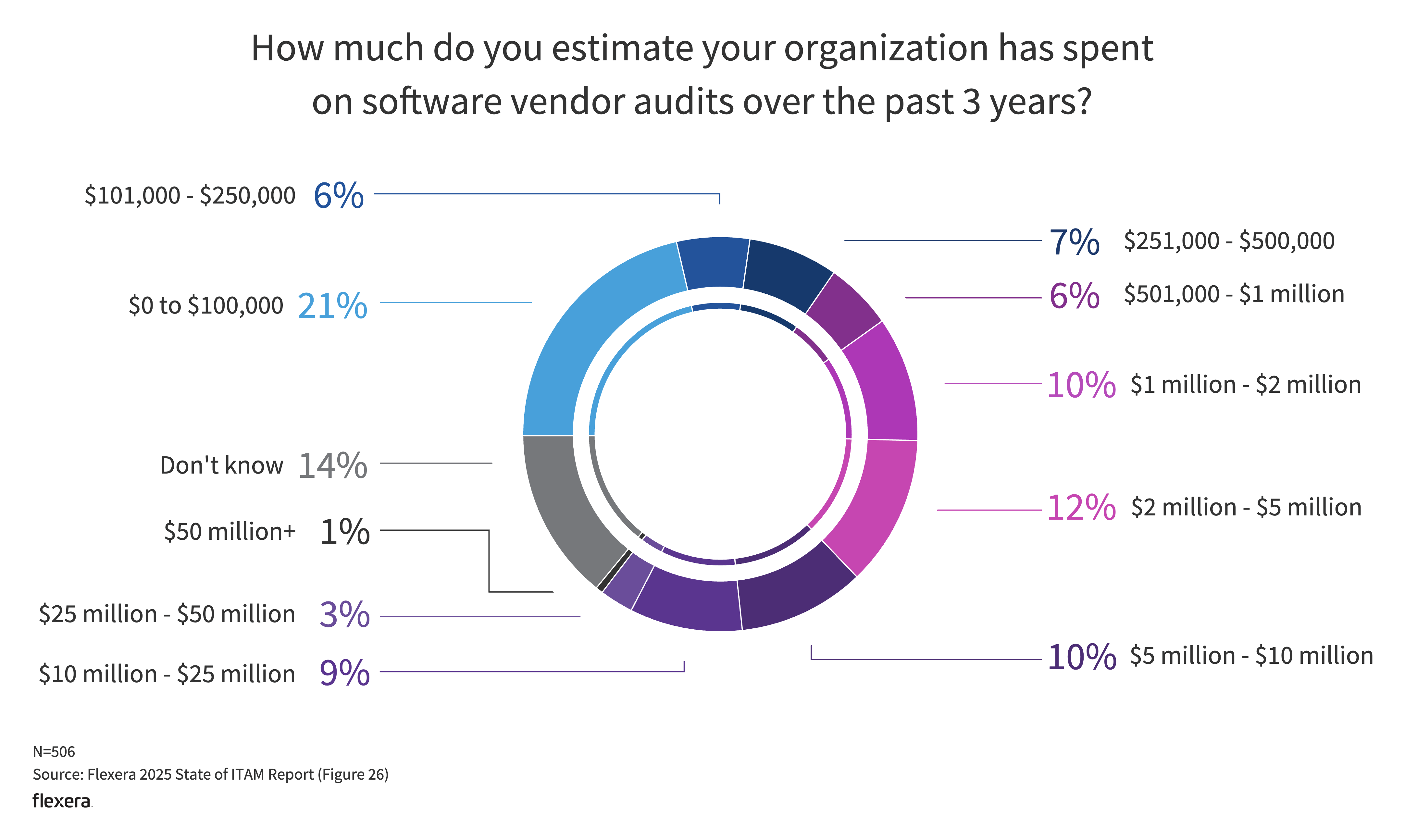 It goes without saying that those audits can be costly. This year, nearly half (45%) of respondents said they paid more than $1 million in software vendor audits. As companies adopt more SaaS and AI applications it will be interesting to see how this affects audits in the near future.