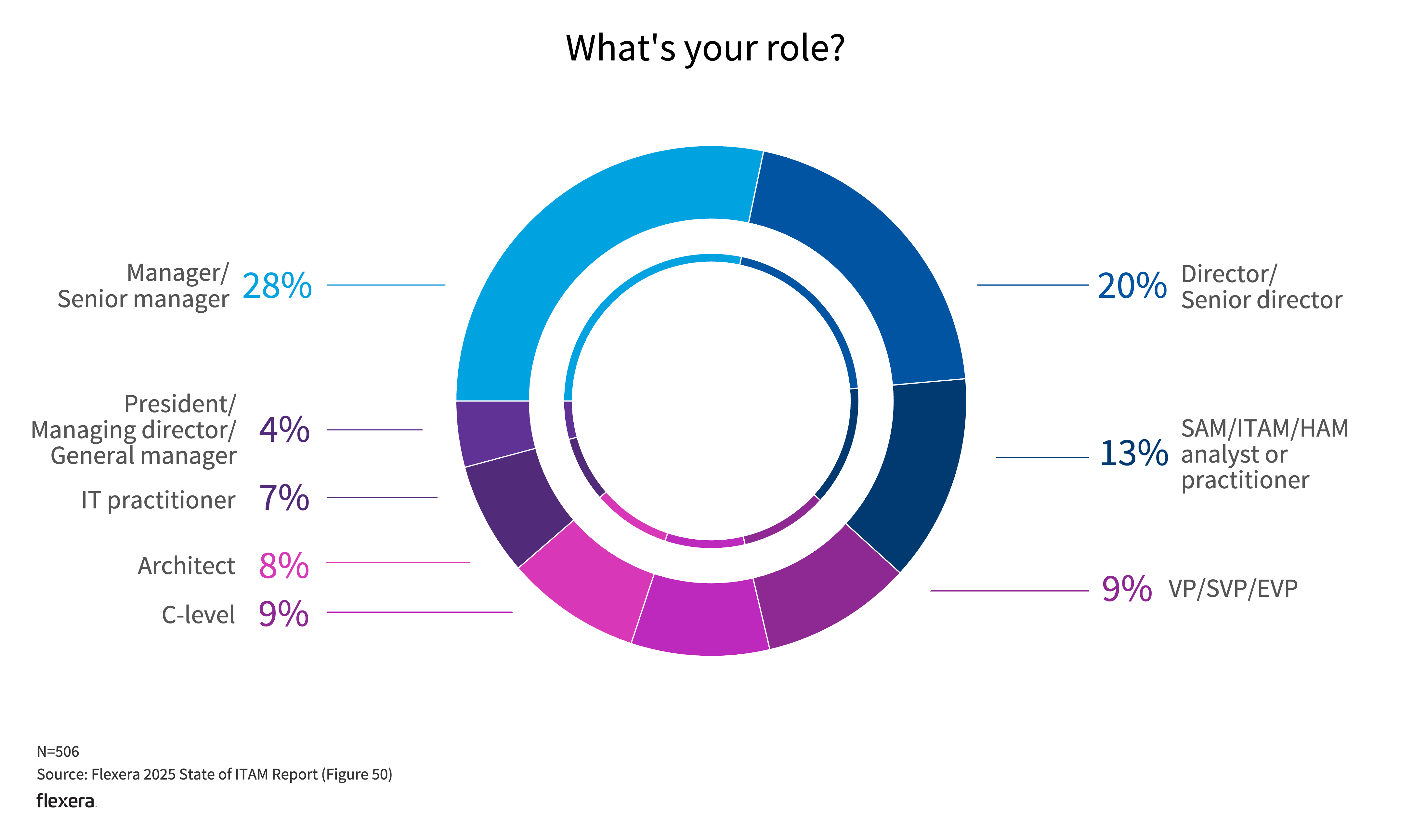 The Flexera State of ITAM survey tapped 506 technical professionals worldwide in early 2025. The network includes professionals across industries and context areas.