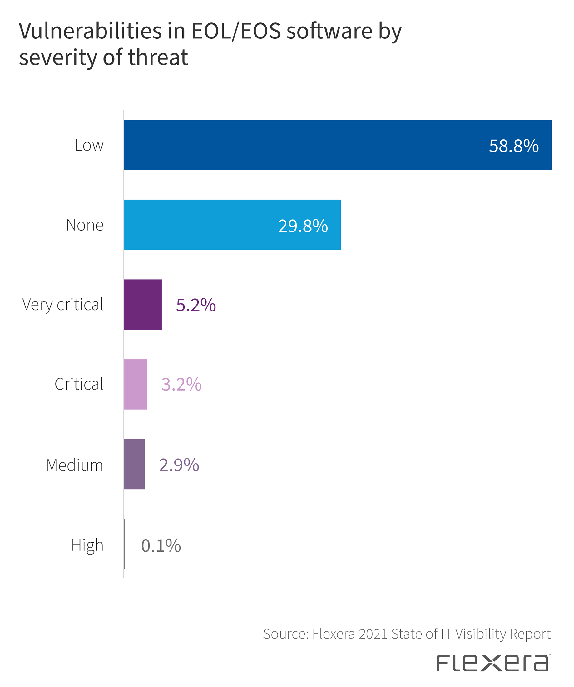 You need comprehensive, clear insights into technology to fuel the data-driven decision making that leads to better results. You need to be aware that most EOL/EOS software, for example, will have a “low” threat severity—but programs that focus solely on high-range and very critical threat scores will miss the majority of vulnerabilities in need of remediation.